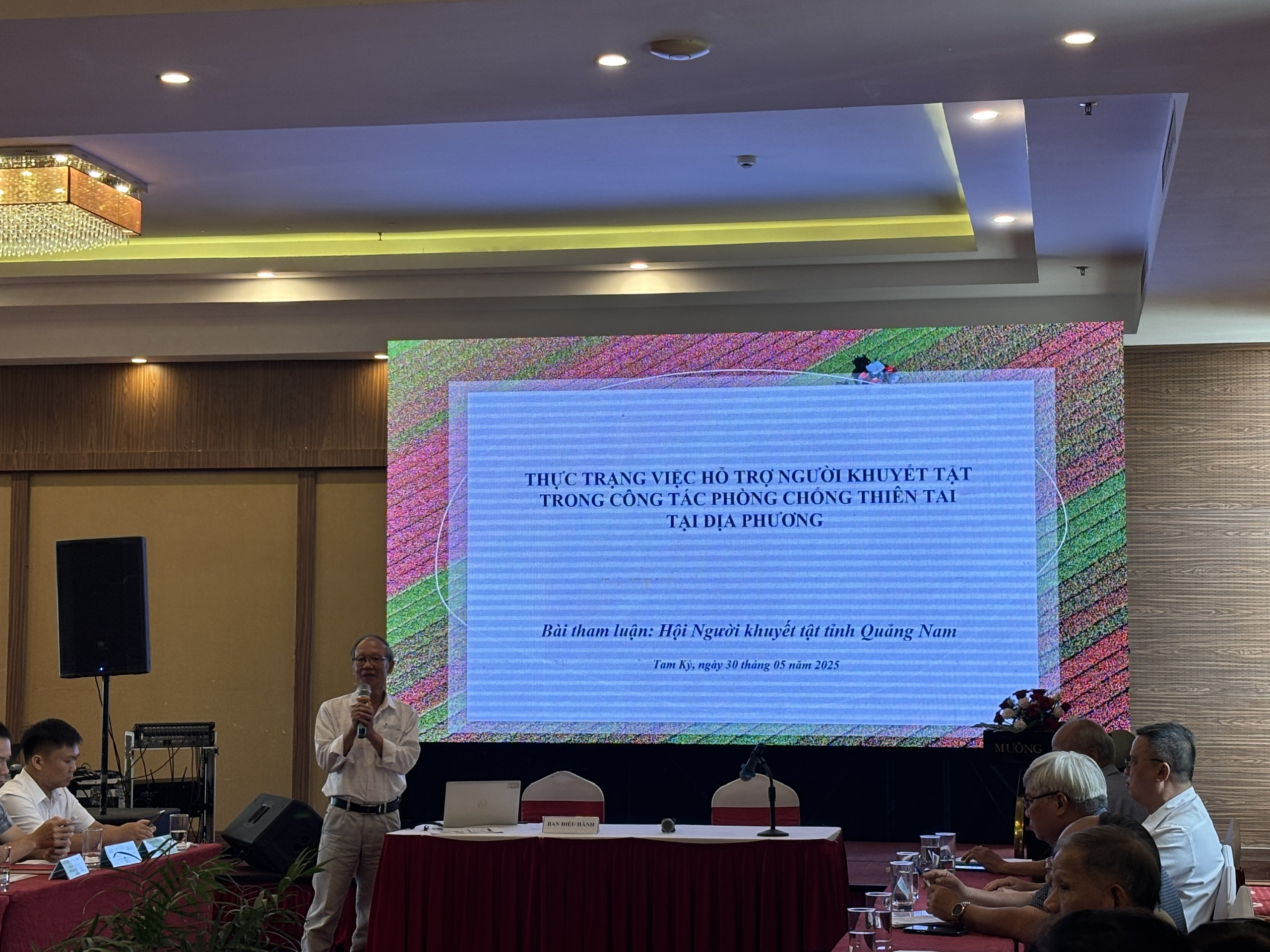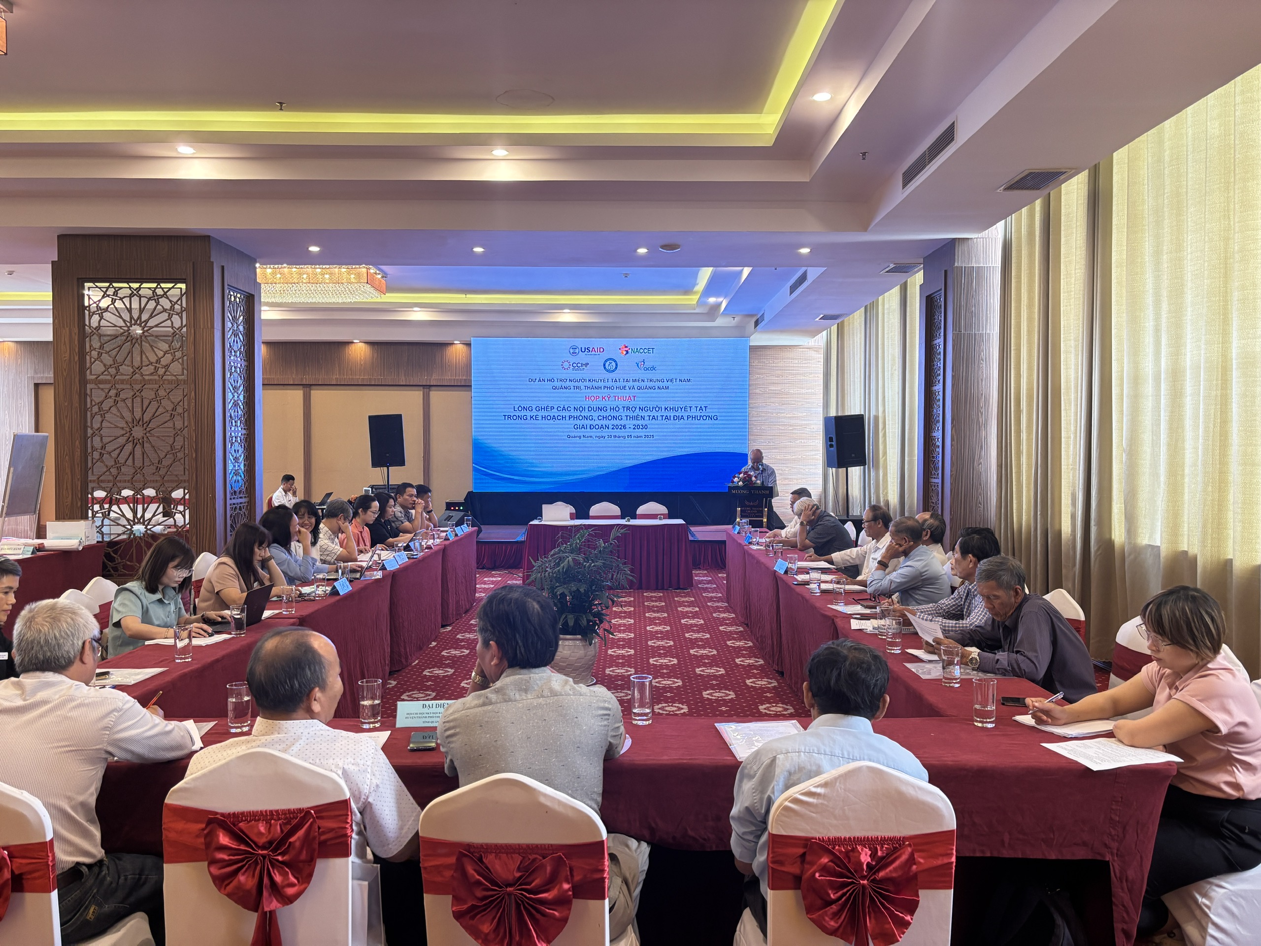 Trong khuôn khổ dự án “Hỗ trợ cải thiện chất lượng sống của người khuyết tật tại các tỉnh bị phun rải nặng chất da cam” (dự án Hoà nhập 1) do USAID tài trợ và theo Văn bản số 1355/SYT-BT&PCTNXH ngày 23/5/2025 của Sở Y tế Quảng Nam; vào ngày 30/5/2025, Hội Người Khuyết tật tỉnh phối hợp với Viện Nghiên cứu phát triển cộng đồng (ACDC) tổ chức hội nghị rà soát các nội dung liên quan đến người khuyết tật trong kế hoạch phòng chống thiên tai giai đoạn 2021-2025 và đề xuất, góp ý lồng ghép các nội dung người khuyết tật trong kế hoạch phòng chống thiên tai tại địa phương giai đoạn 2026 – 2030. Tham dự hội nghị, có các đại biểu là đại diện của Sở Y tế, Văn phòng thường trực Ban Chỉ huy PCTT và TKCN tỉnh, Hội Người khuyết tật, Hội Người mù, đại diện Hội/chi Hội tại một số địa phương, trạm y tế xã và một số đại biểu là đại diện Viện Nghiên cứu phát triển cộng đồng, chuyên gia tư vấn đến từ Trung tâm Chính sách và kỹ thuật phòng, chống thiên tai, Cục Quản lý Đê điều và PCTT thuộc Bộ Nông Nghiệp và Môi trường.