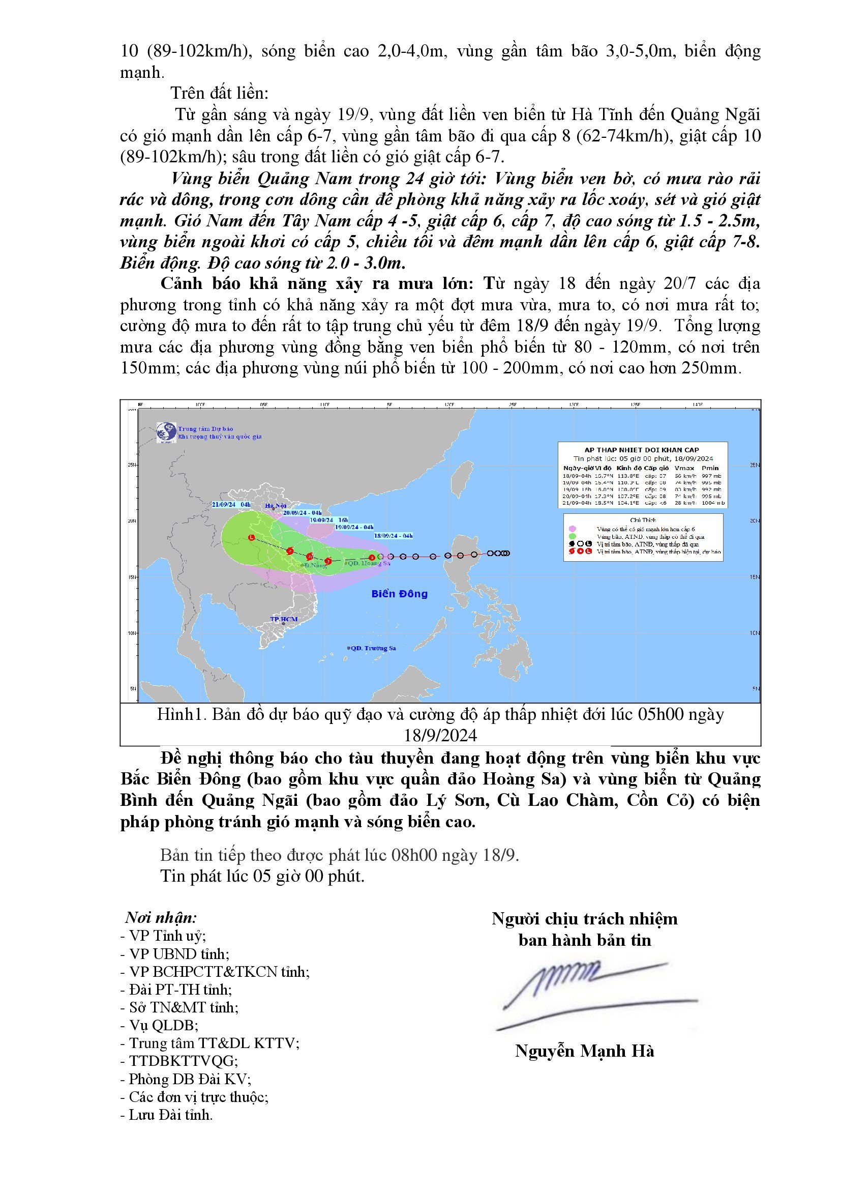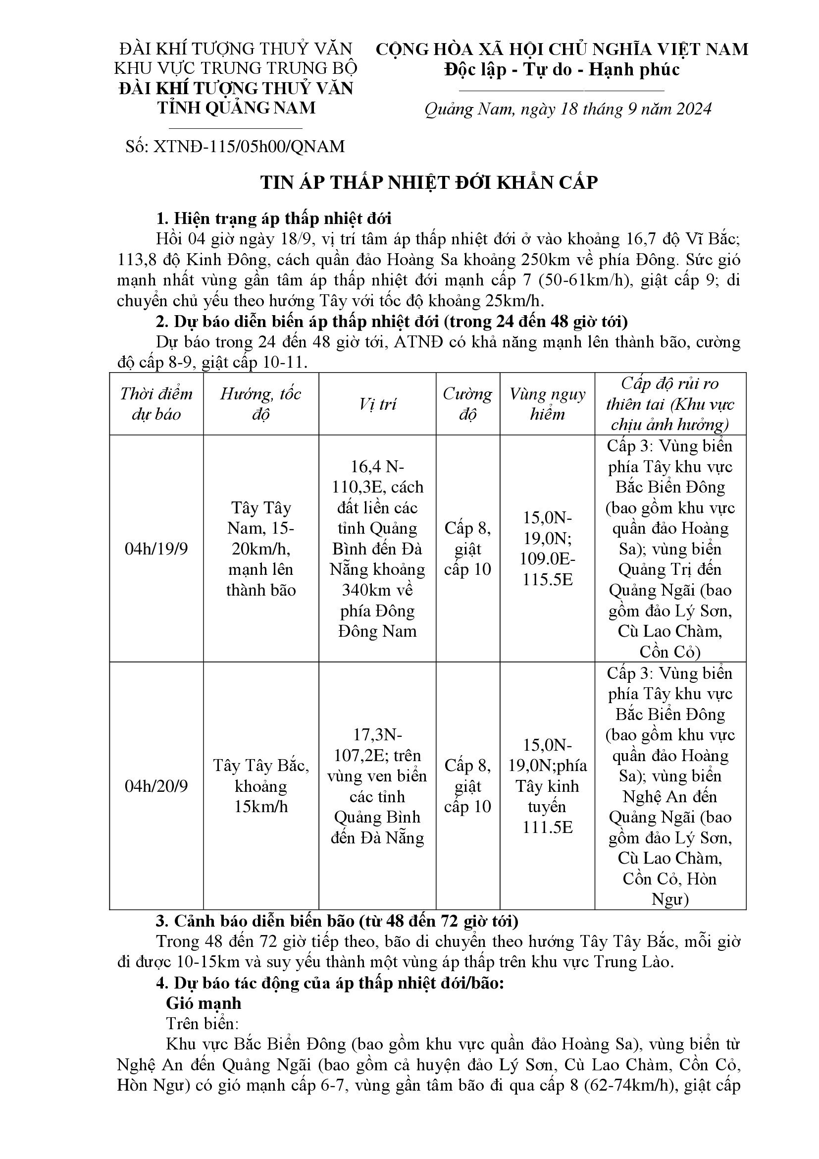 Người đăng: Văn phòng thường trực Ban Chỉ huy Phòng chống thiên tai và TKCN Quảng Nam Ngày đăng: 7:55 | 18/09/2024 Lượt xem: 120