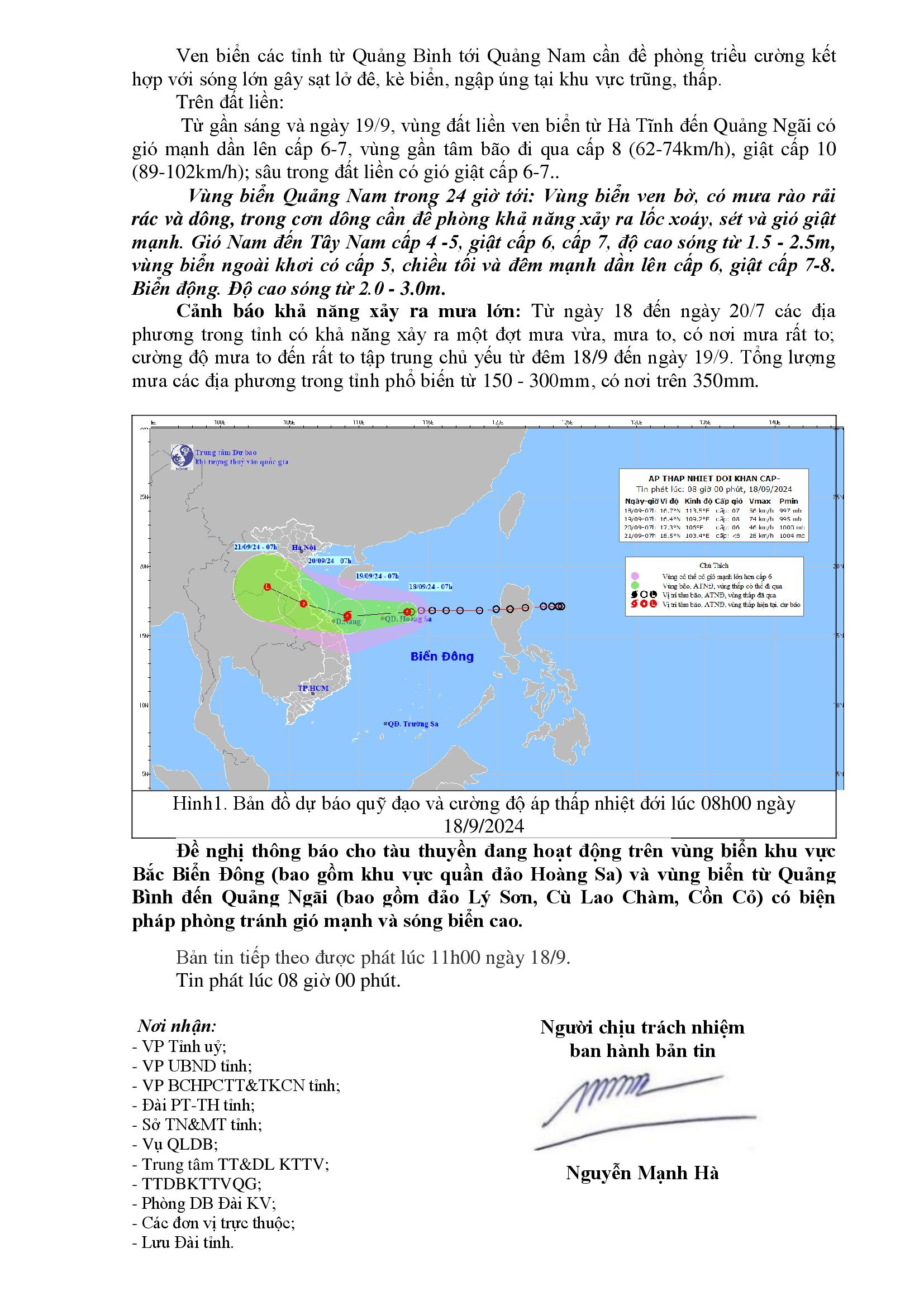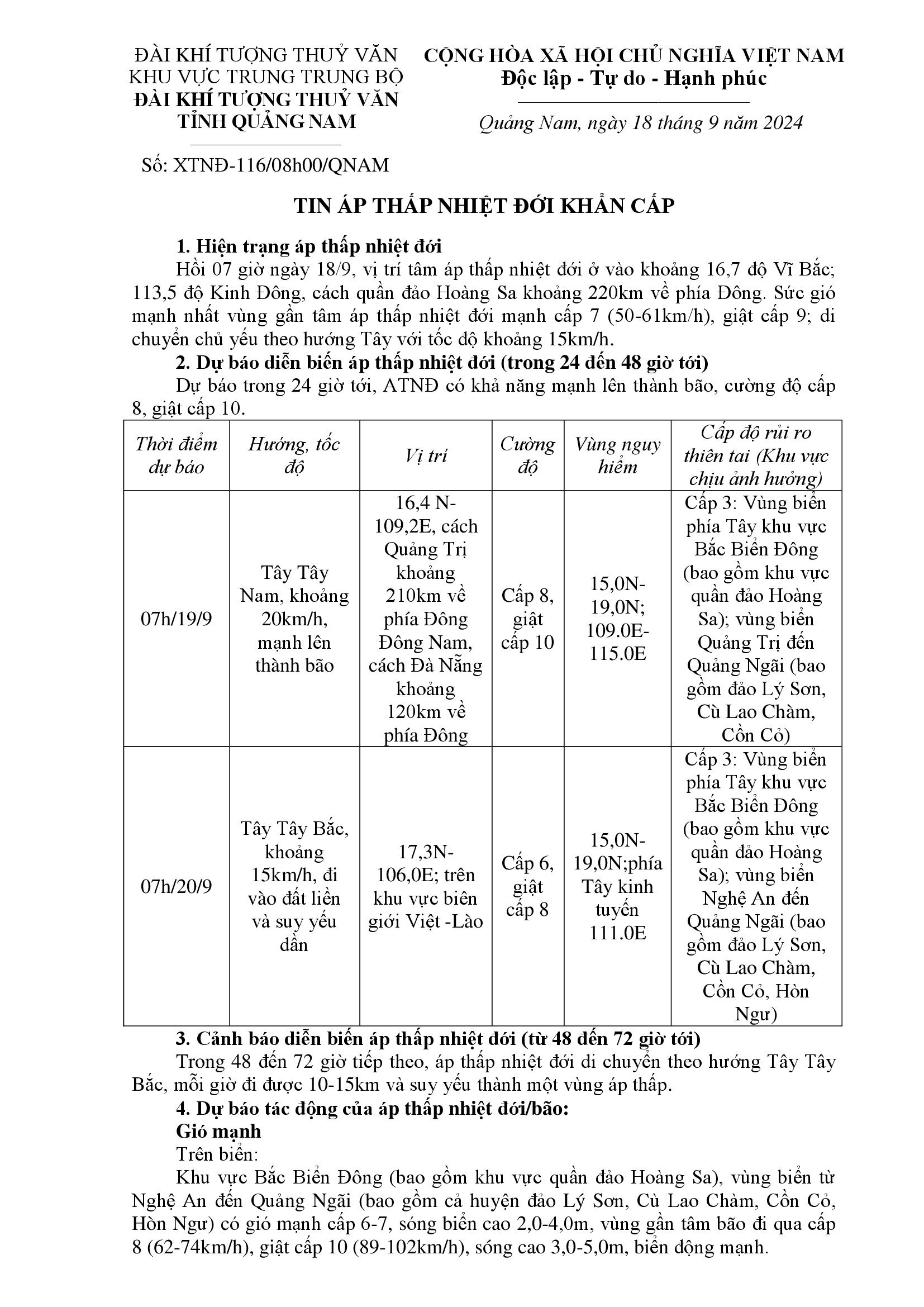 Người đăng: Văn phòng thường trực Ban Chỉ huy Phòng chống thiên tai và TKCN Quảng Nam Ngày đăng: 8:34 | 18/09/2024 Lượt xem: 124