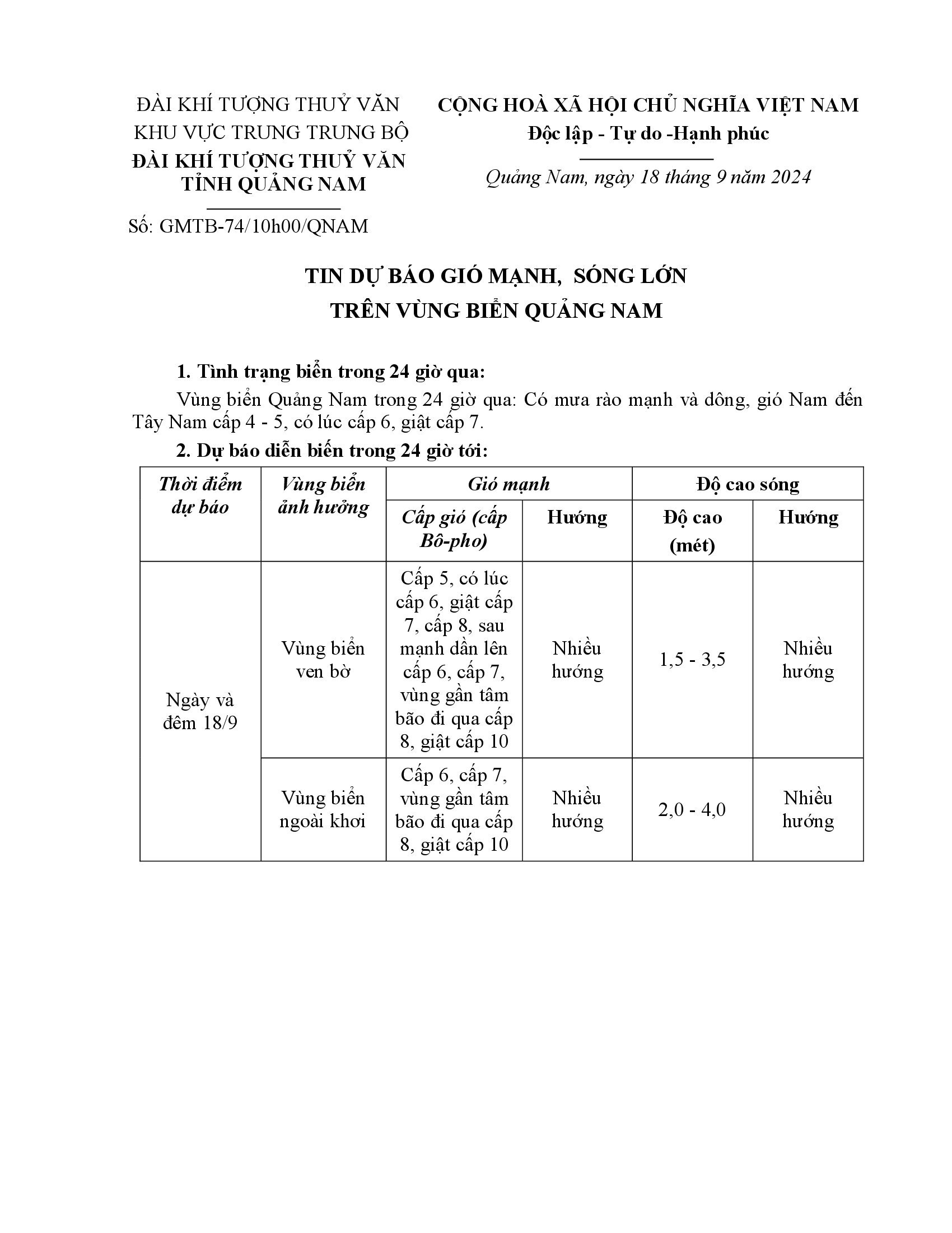 Người đăng: Văn phòng thường trực Ban Chỉ huy Phòng chống thiên tai và TKCN Quảng Nam Ngày đăng: 11:14 | 18/09/2024 Lượt xem: 103