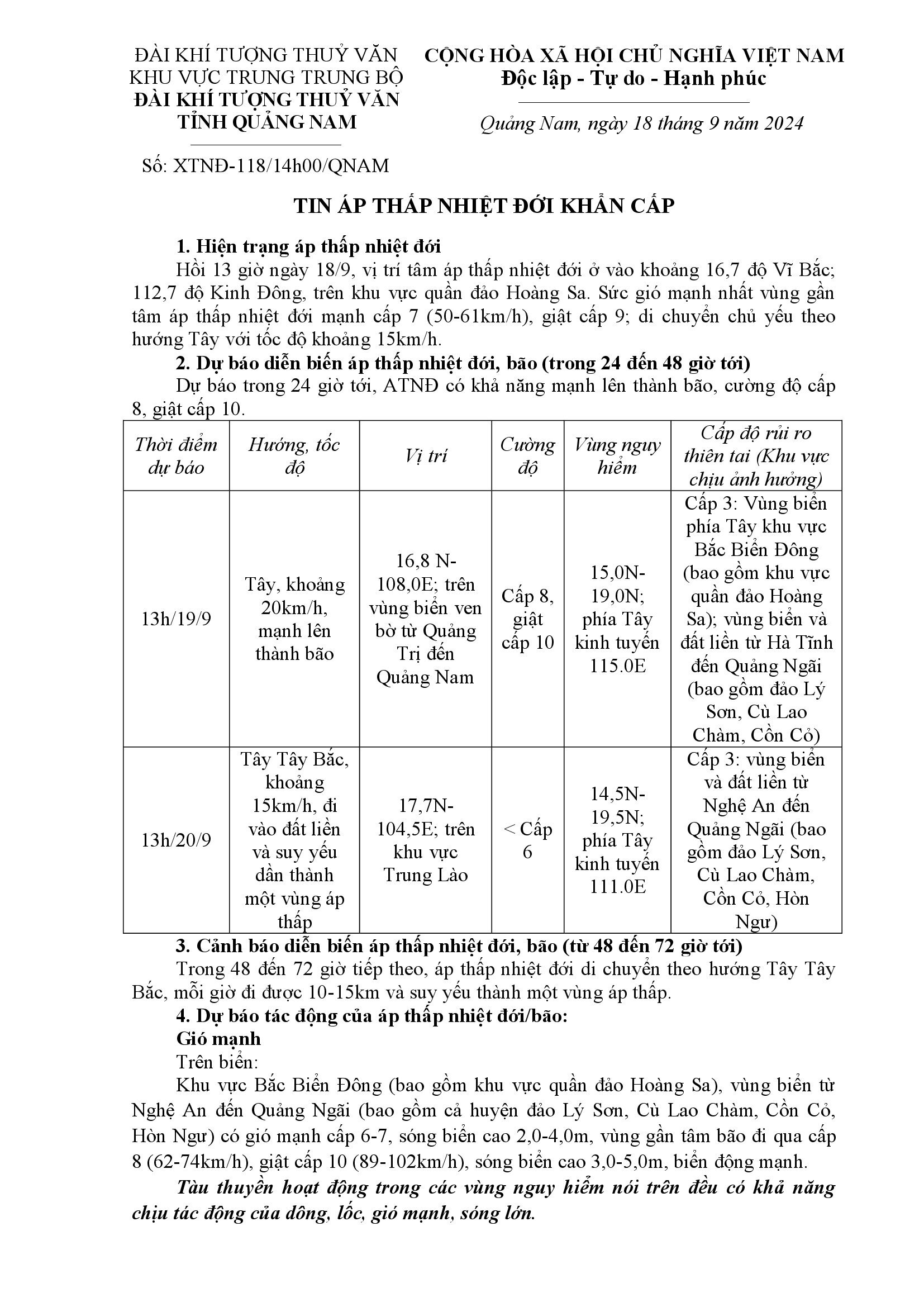Người đăng: Văn phòng thường trực Ban Chỉ huy Phòng chống thiên tai và TKCN Quảng Nam Ngày đăng: 16:09 | 18/09/2024 Lượt xem: 97