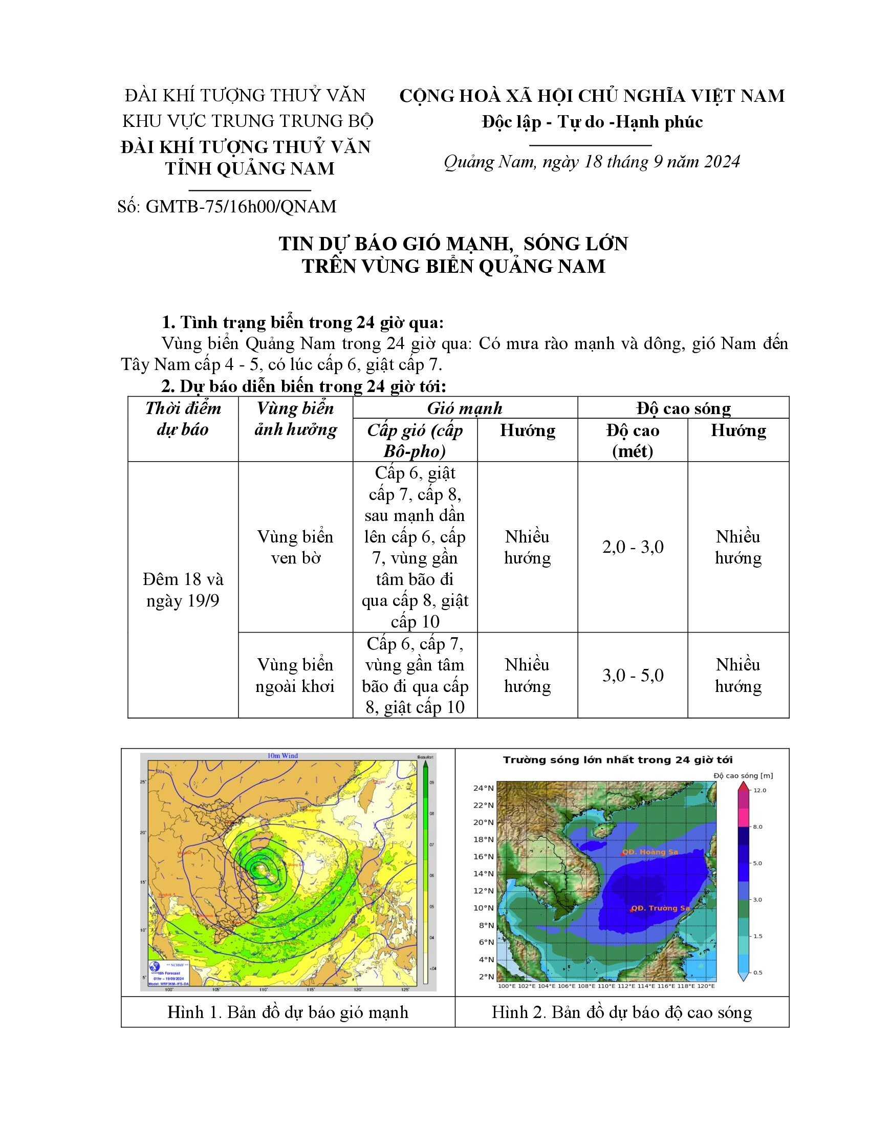 Người đăng: Văn phòng thường trực Ban Chỉ huy Phòng chống thiên tai và TKCN Quảng Nam Ngày đăng: 16:17 | 18/09/2024 Lượt xem: 113