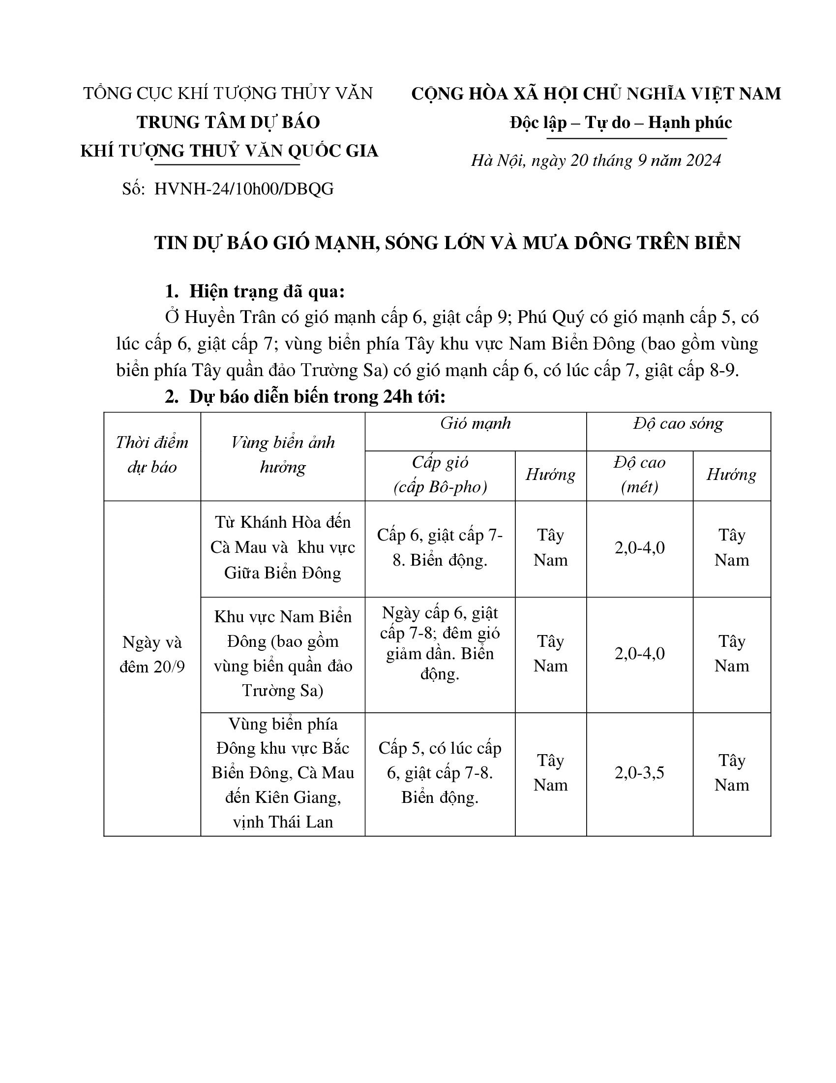 Người đăng: Văn phòng thường trực Ban Chỉ huy Phòng chống thiên tai và TKCN Quảng Nam Ngày đăng: 10:20 | 20/09/2024 Lượt xem: 103