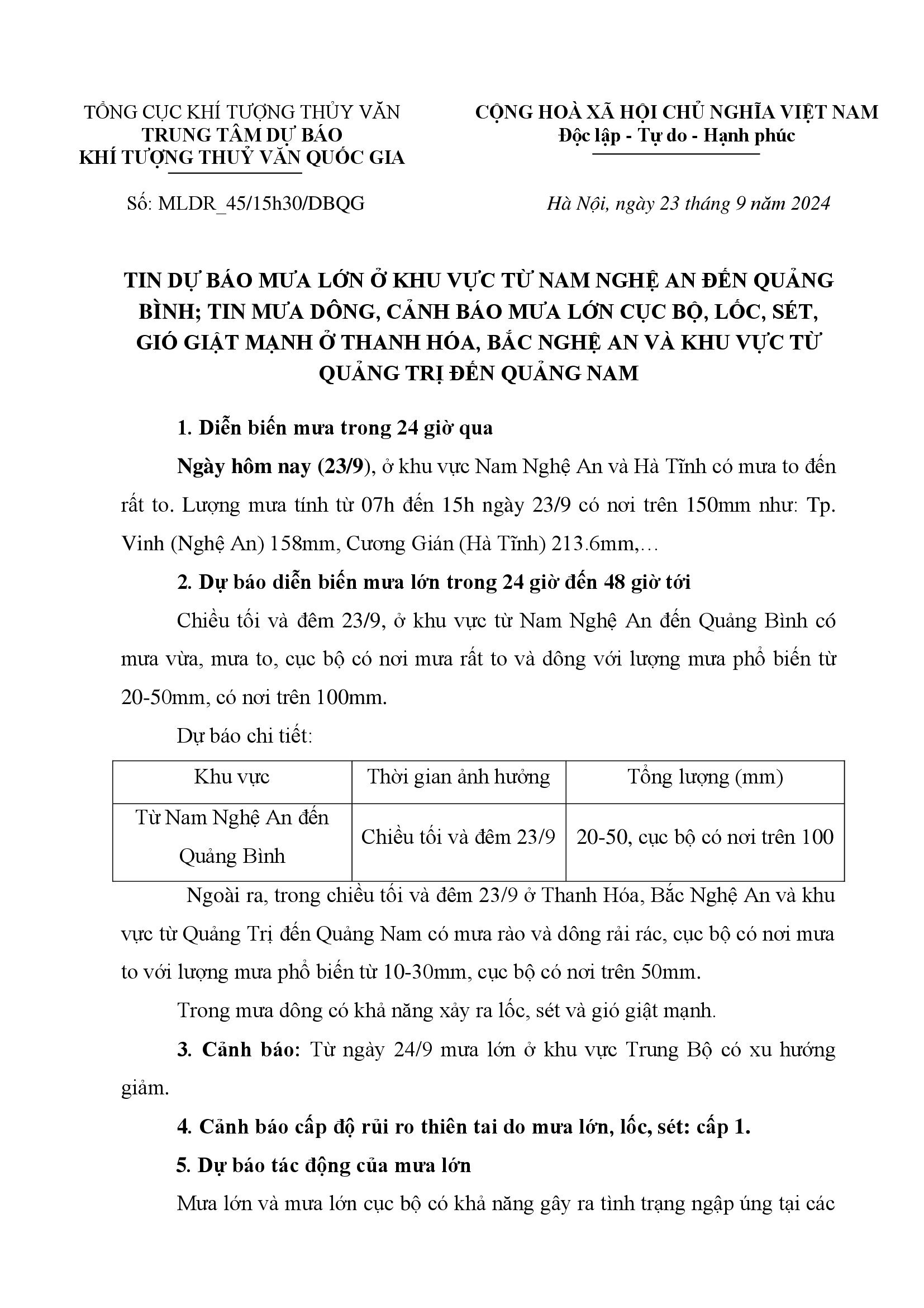 Nguồn tin: Trung tâm dự báo KTTV Quốc gia