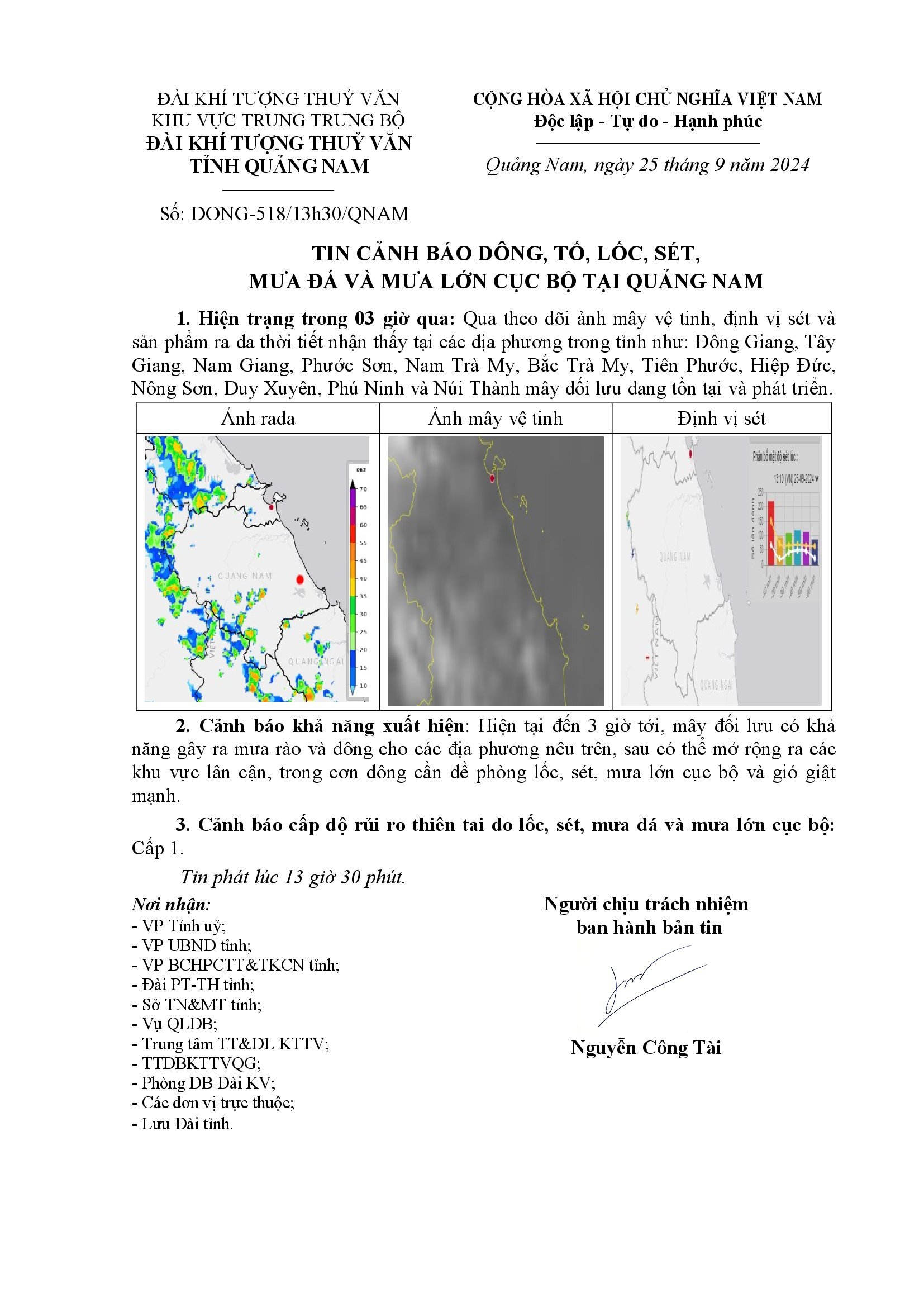 Người đăng: Văn phòng thường trực Ban Chỉ huy Phòng chống thiên tai và TKCN Quảng Nam Ngày đăng: 15:06 | 25/09/2024 Lượt xem: 72