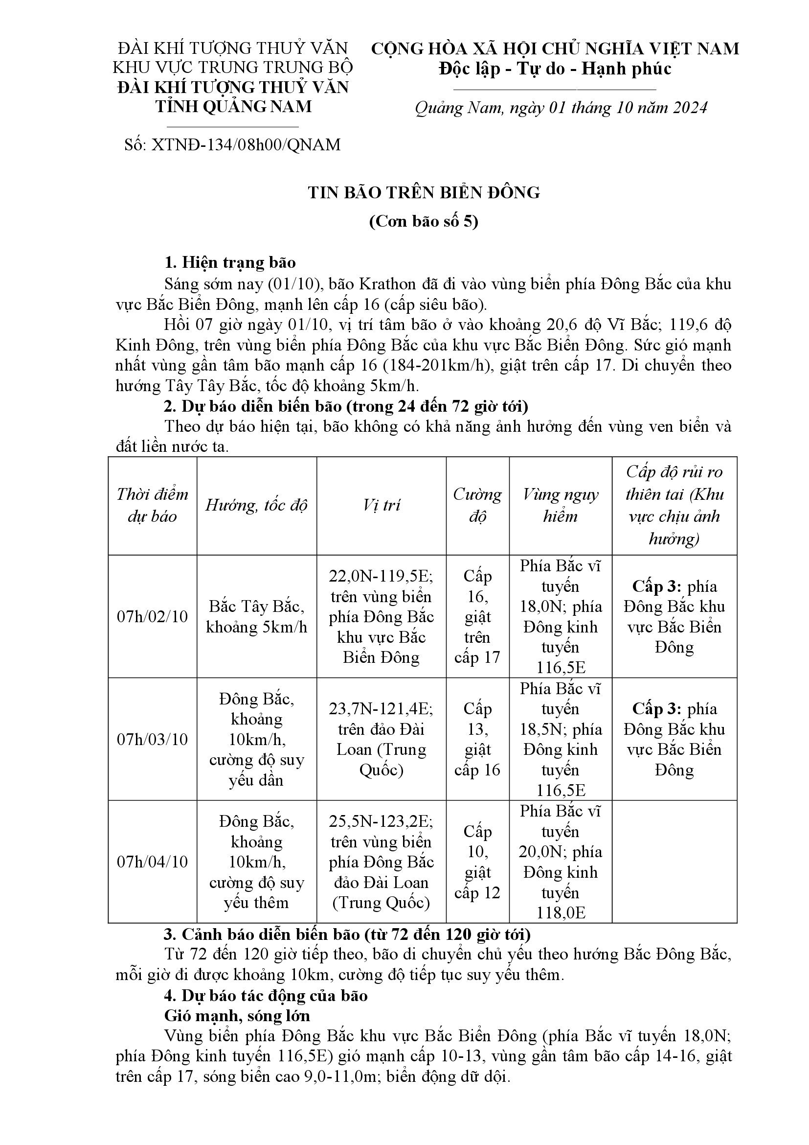 Người đăng: Văn phòng thường trực Ban Chỉ huy Phòng chống thiên tai và TKCN Quảng Nam Ngày đăng: 8:36 | 01/10/2024 Lượt xem: 61