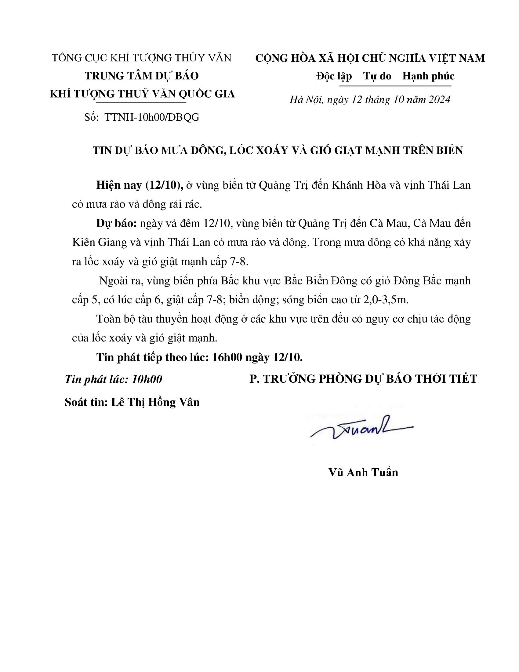 Nguồn tin: Trung tâm dự báo KTTV Quốc gia
