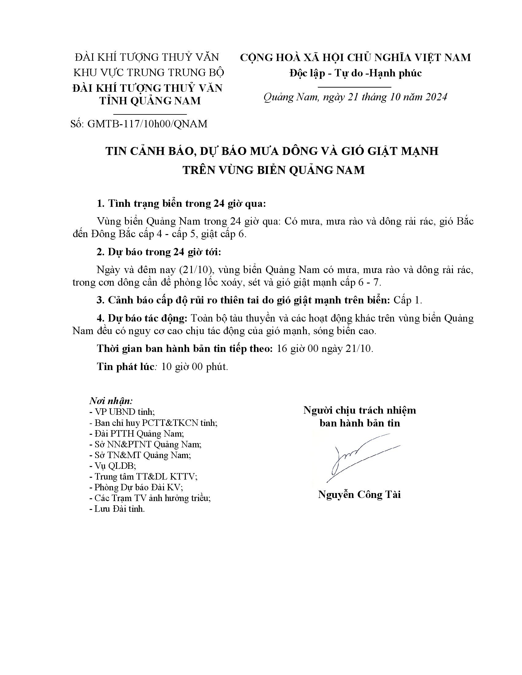 Người đăng: Văn phòng thường trực Ban Chỉ huy Phòng chống thiên tai và TKCN Quảng Nam Ngày đăng: 10:09 | 21/10/2024 Lượt xem: 86