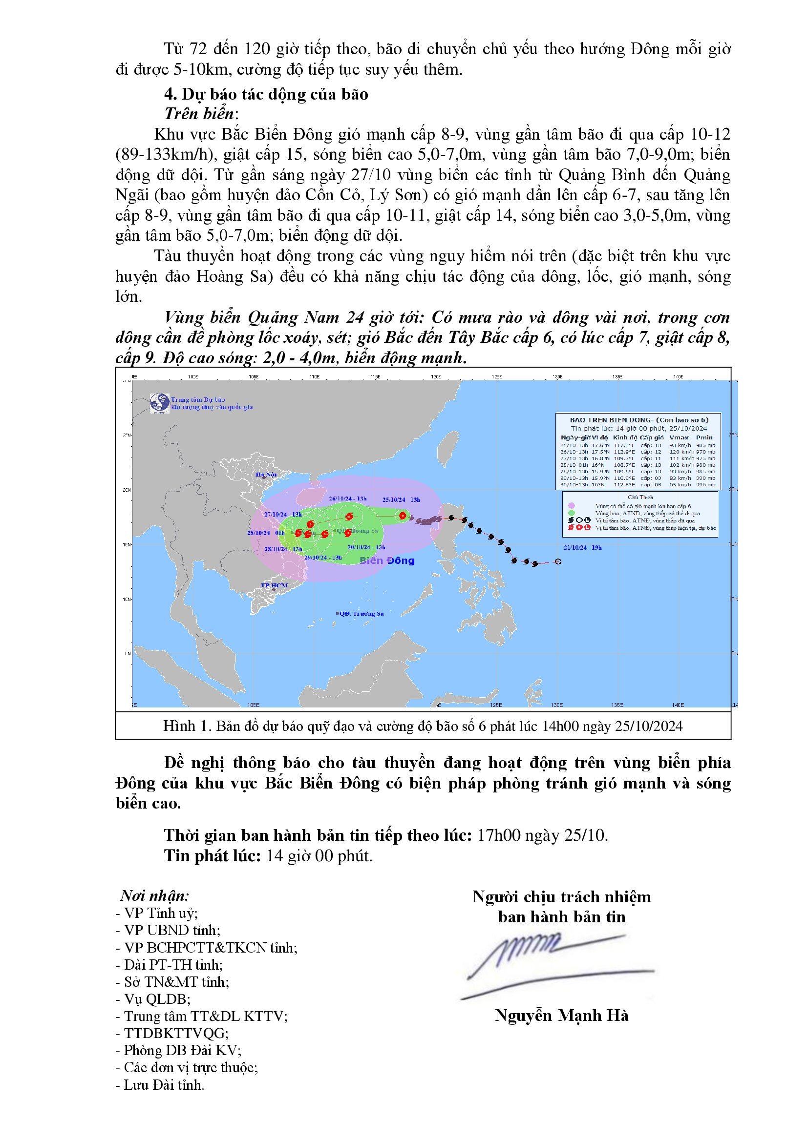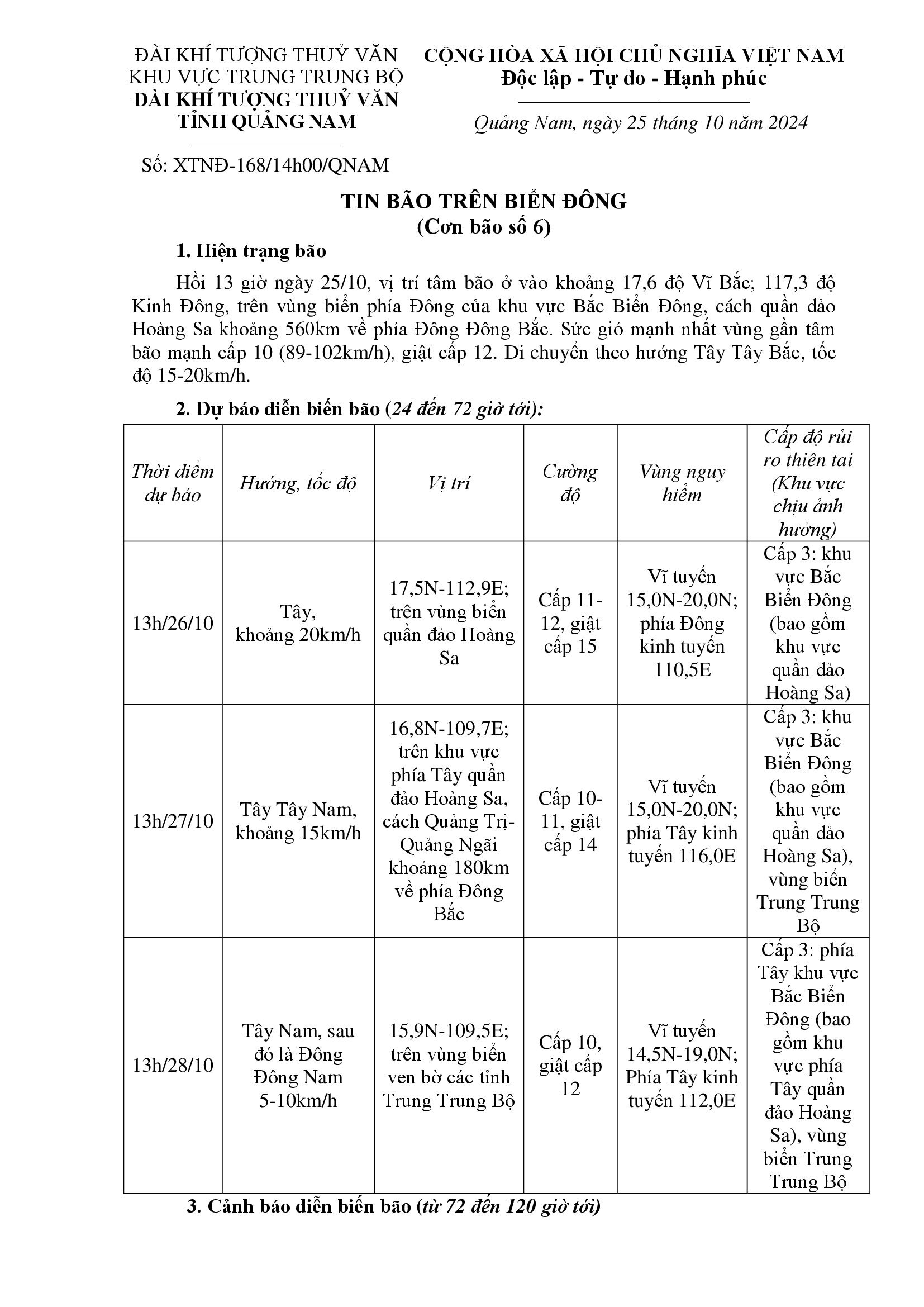 Người đăng: Văn phòng thường trực Ban Chỉ huy Phòng chống thiên tai và TKCN Quảng Nam Ngày đăng: 15:25 | 25/10/2024 Lượt xem: 114