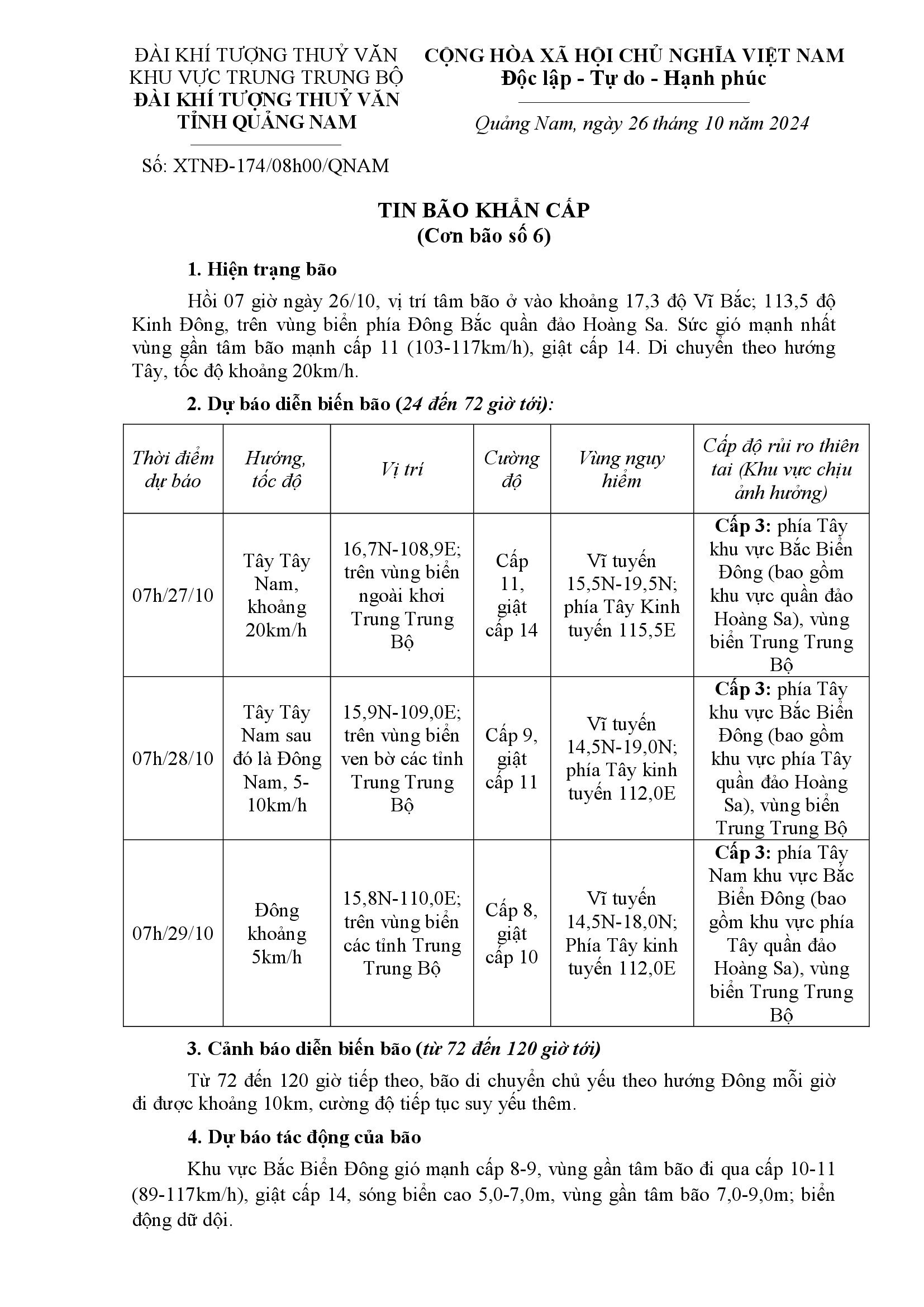 Người đăng: Văn phòng thường trực Ban Chỉ huy Phòng chống thiên tai và TKCN Quảng Nam Ngày đăng: 8:18 | 26/10/2024 Lượt xem: 130