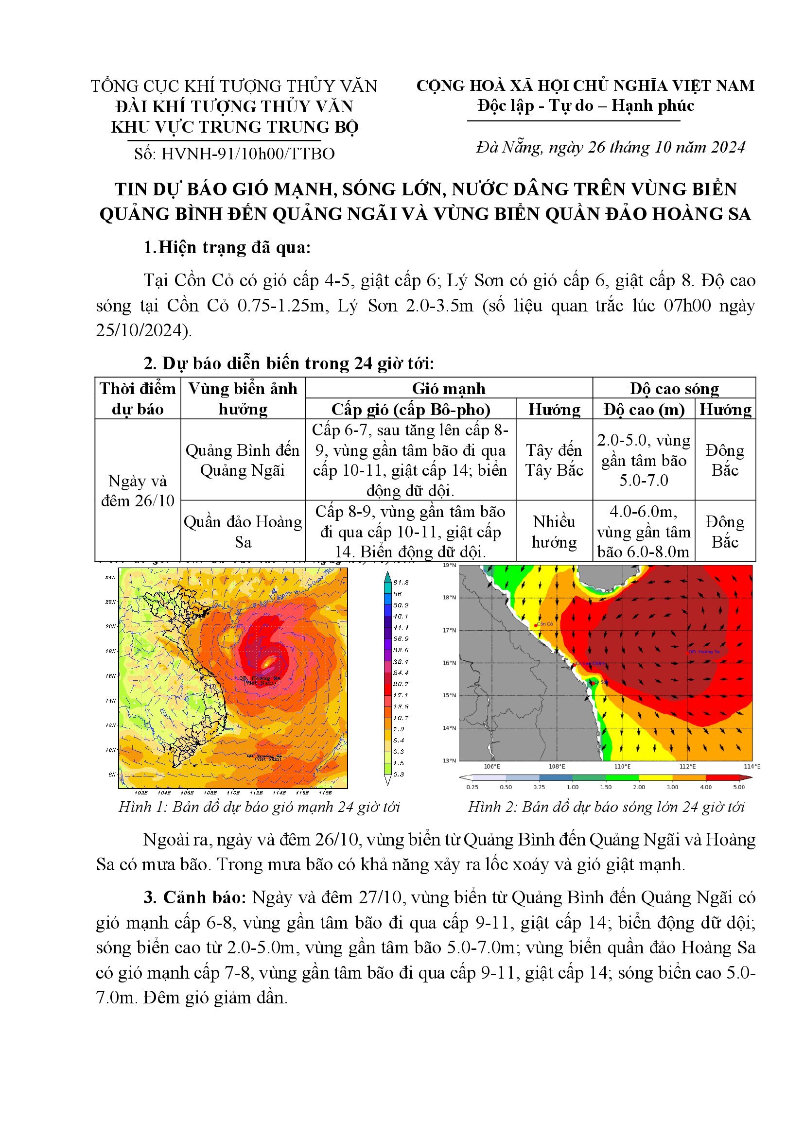 Người đăng: Văn phòng thường trực Ban Chỉ huy Phòng chống thiên tai và TKCN Quảng Nam Ngày đăng: 10:54 | 26/10/2024 Lượt xem: 96