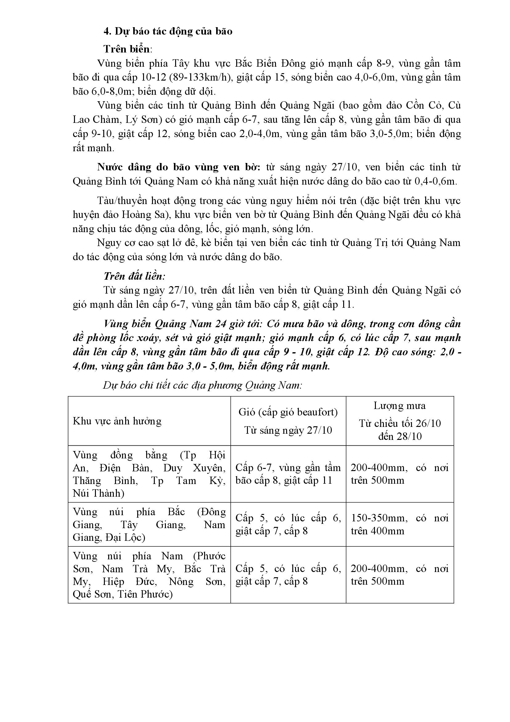 Người đăng: Văn phòng thường trực Ban Chỉ huy Phòng chống thiên tai và TKCN Quảng Nam Ngày đăng: 17:34 | 26/10/2024 Lượt xem: 134