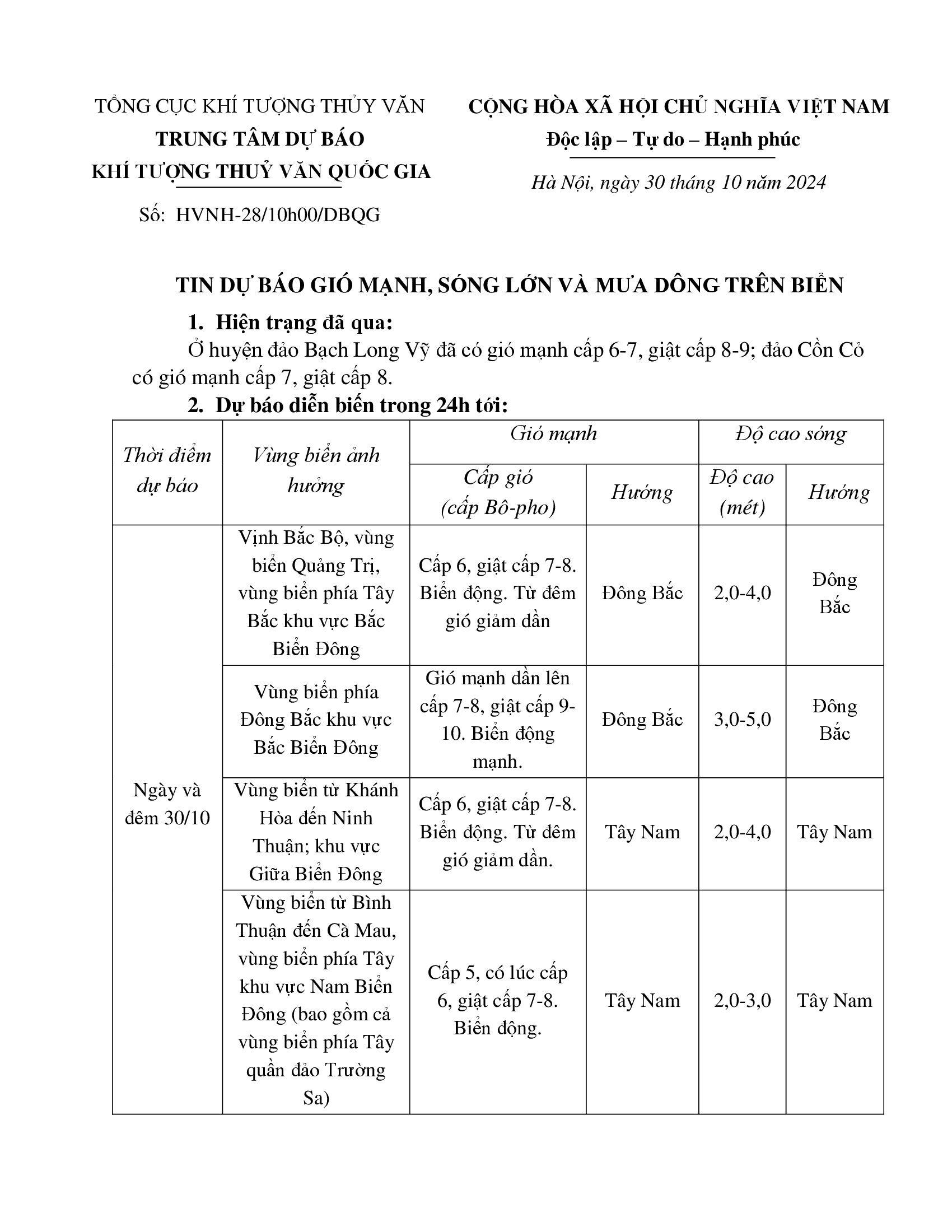 Nguồn tin: Trung tâm dự báo KTTV Quốc gia