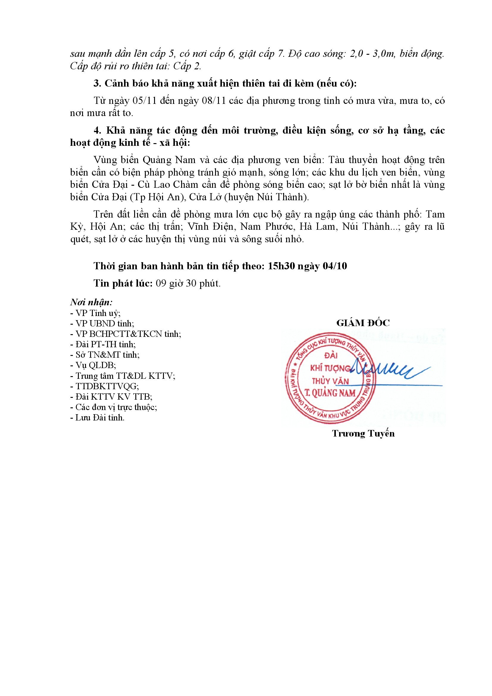 Người đăng: Văn phòng thường trực Ban Chỉ huy Phòng chống thiên tai và TKCN Quảng Nam Ngày đăng: 9:53 | 04/11/2024 Lượt xem: 62
