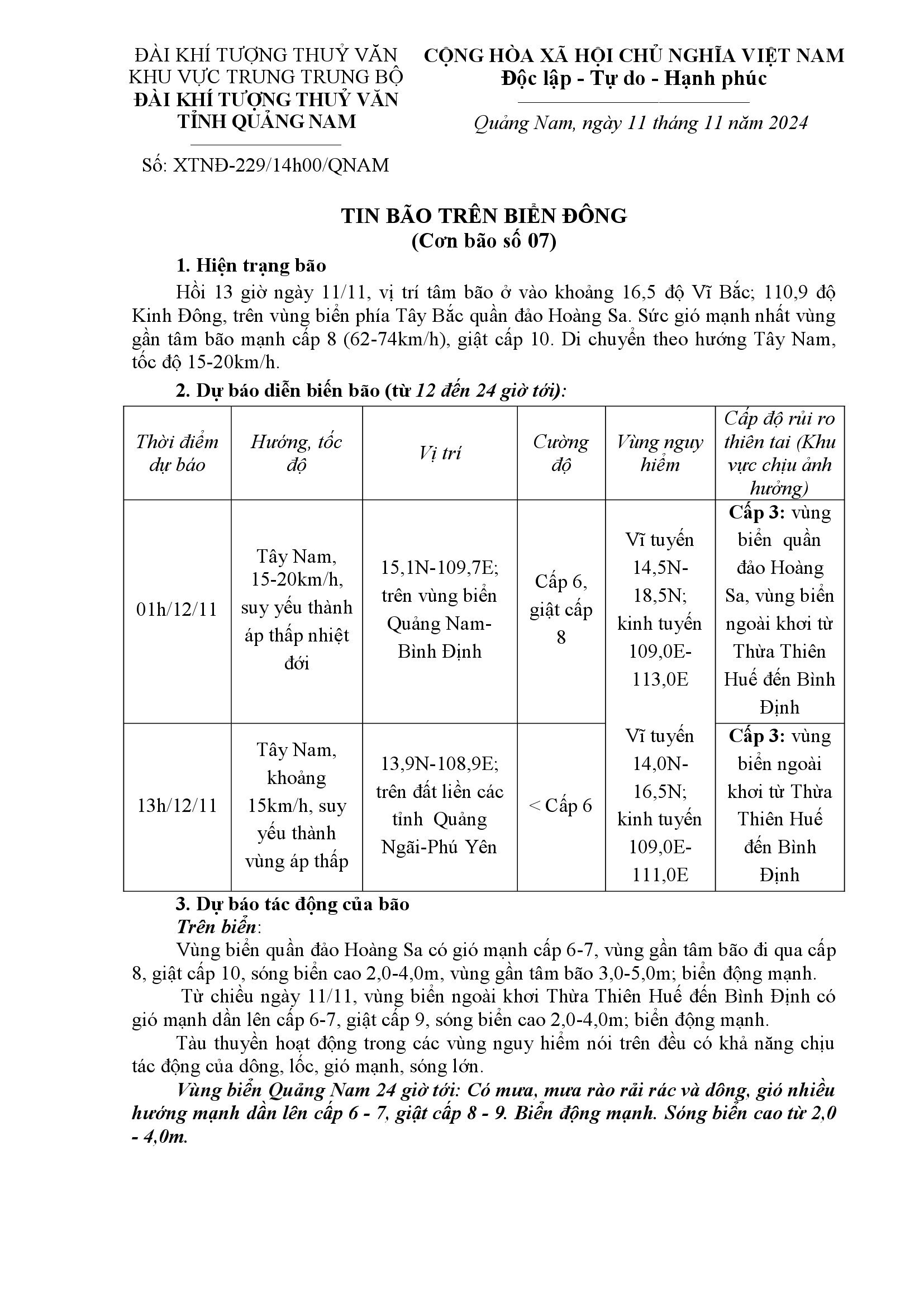 Người đăng: Văn phòng thường trực Ban Chỉ huy Phòng chống thiên tai và TKCN Quảng Nam Ngày đăng: 15:45 | 11/11/2024 Lượt xem: 70