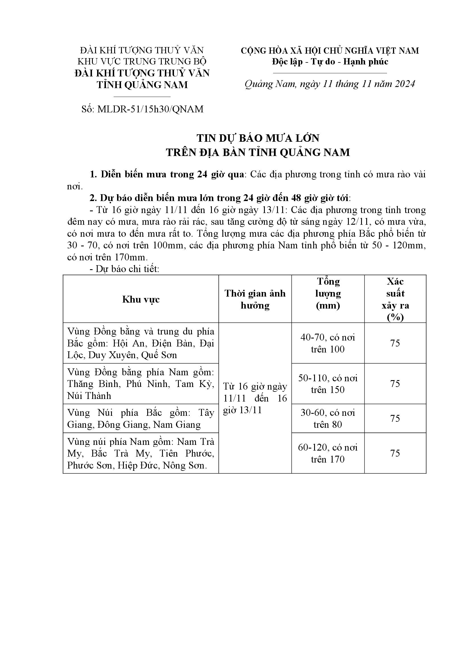 Người đăng: Văn phòng thường trực Ban Chỉ huy Phòng chống thiên tai và TKCN Quảng Nam Ngày đăng: 15:50 | 11/11/2024 Lượt xem: 73