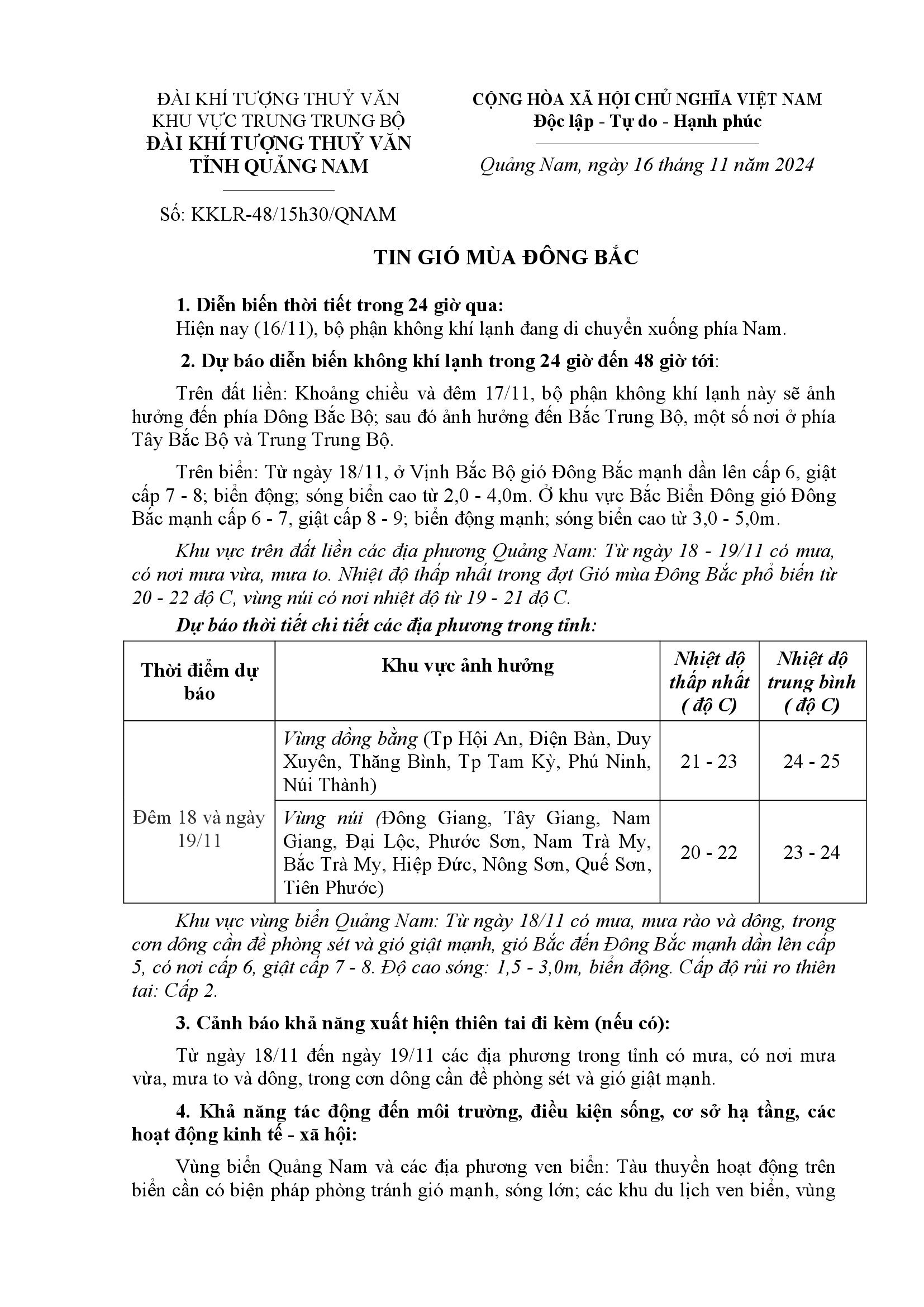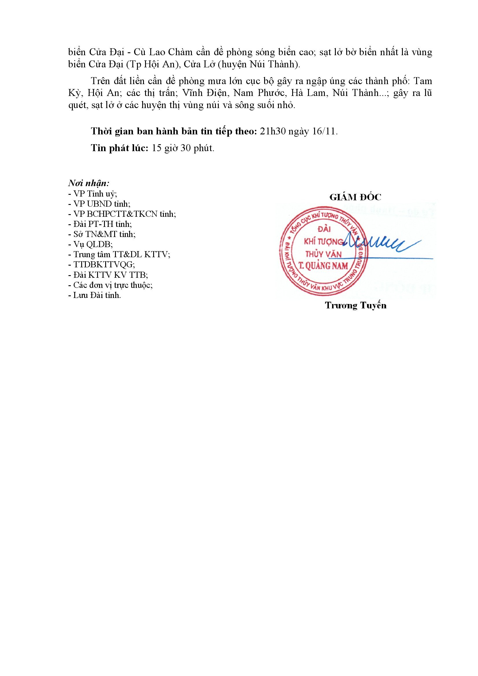 Người đăng: Văn phòng thường trực Ban Chỉ huy Phòng chống thiên tai và TKCN Quảng Nam Ngày đăng: 15:56 | 16/11/2024 Lượt xem: 76