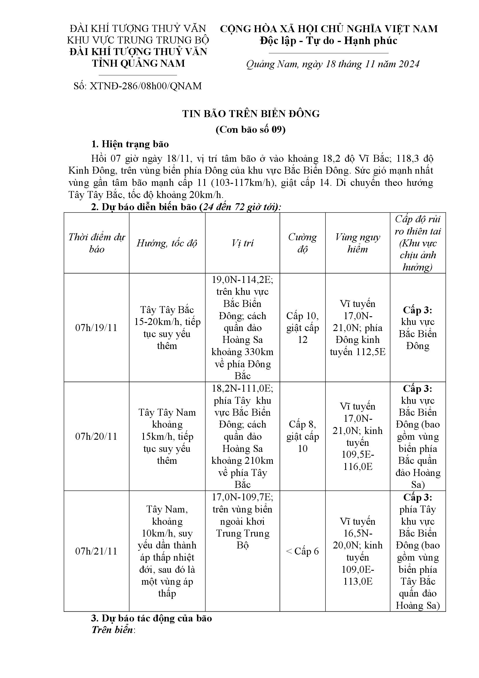 Người đăng: Văn phòng thường trực Ban Chỉ huy Phòng chống thiên tai và TKCN Quảng Nam Ngày đăng: 8:24 | 18/11/2024 Lượt xem: 67