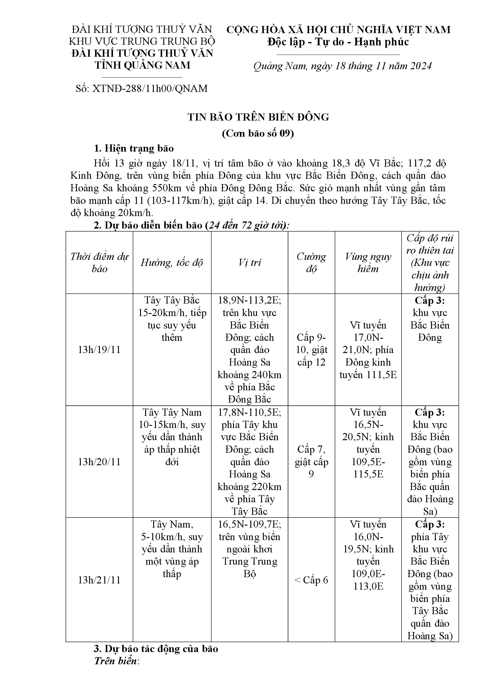 Người đăng: Văn phòng thường trực Ban Chỉ huy Phòng chống thiên tai và TKCN Quảng Nam Ngày đăng: 14:23 | 18/11/2024 Lượt xem: 69