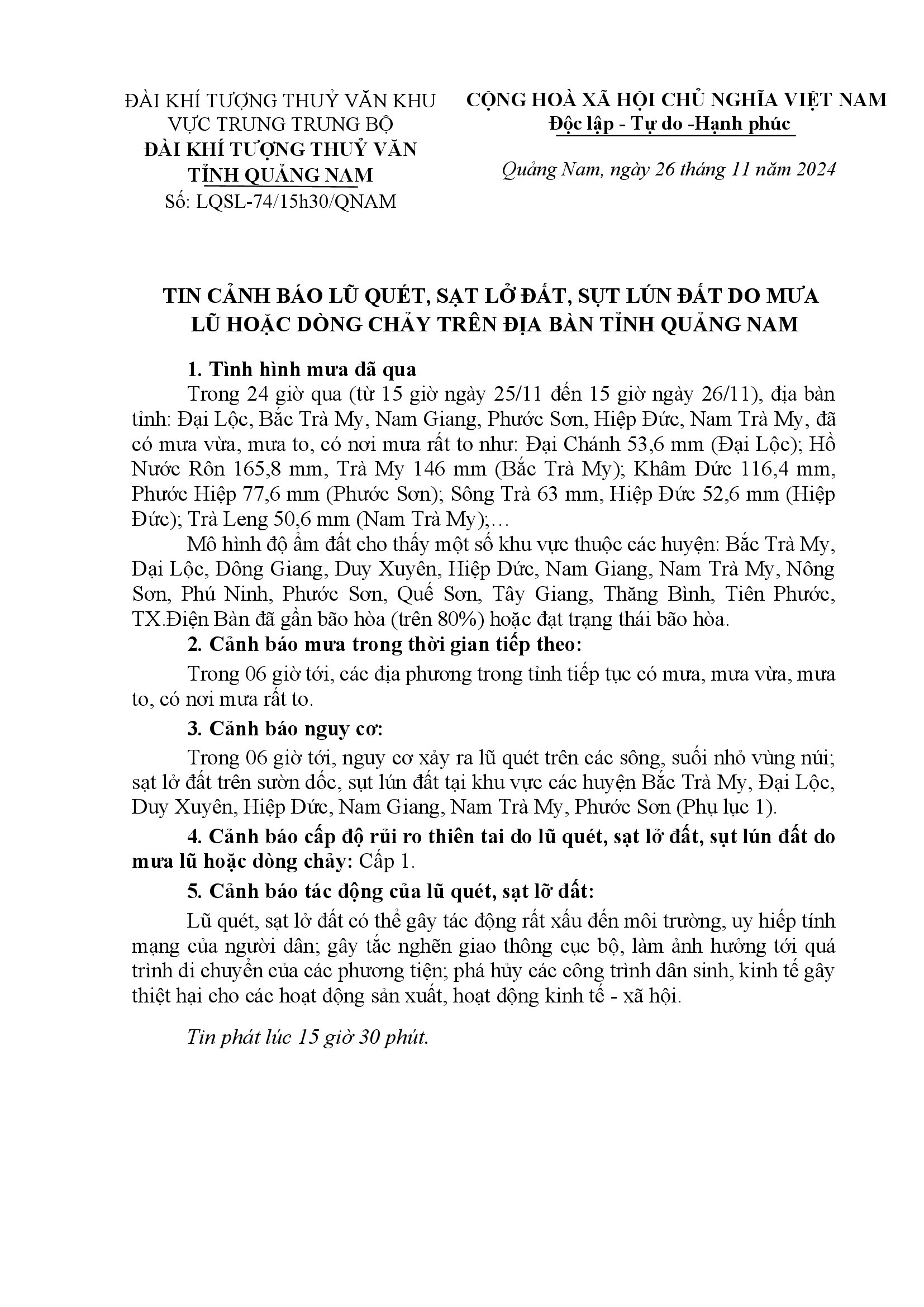 Người đăng: Văn phòng thường trực Ban Chỉ huy Phòng chống thiên tai và TKCN Quảng Nam Ngày đăng: 16:05 | 26/11/2024 Lượt xem: 80