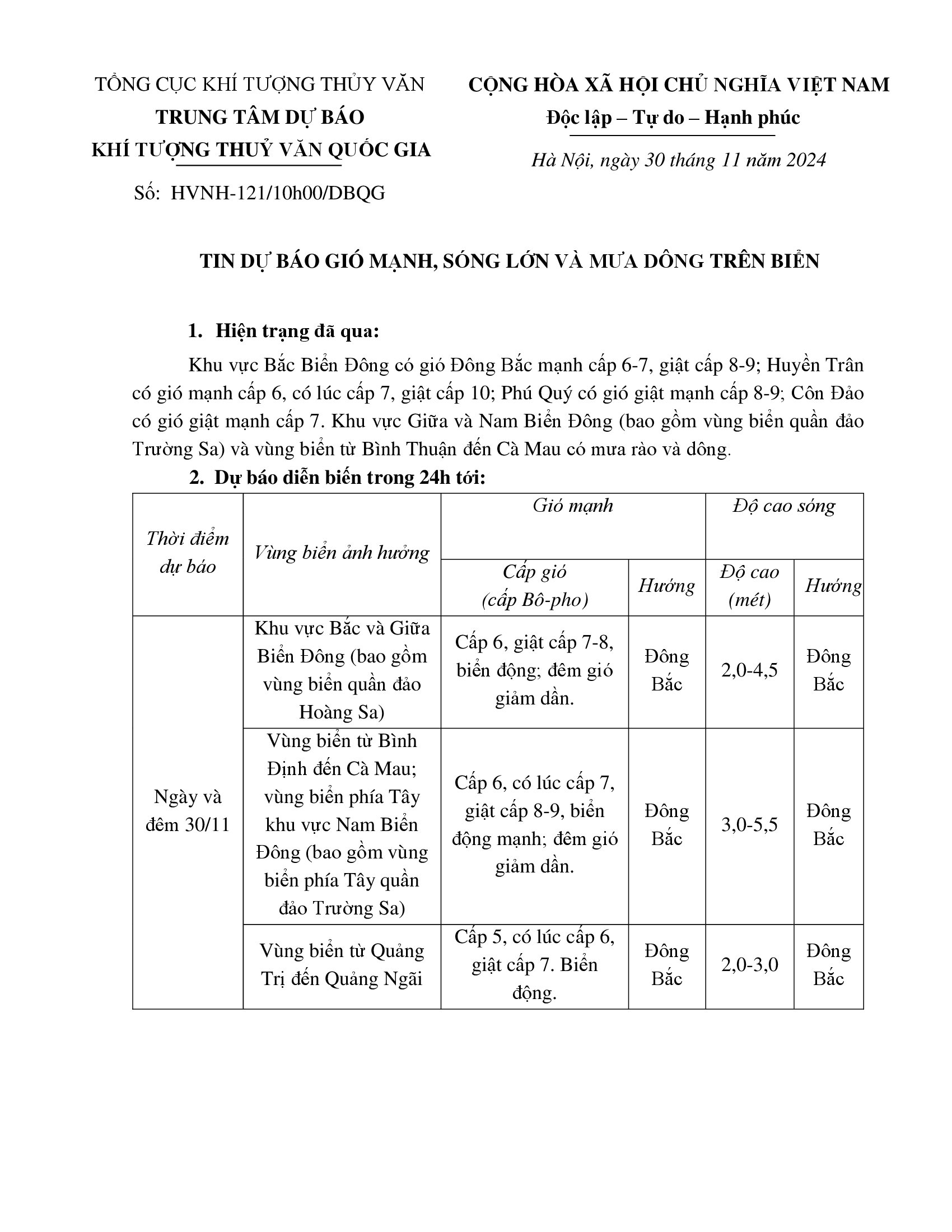 Nguồn tin: Trung tâm dự báo KTTV Quốc gia