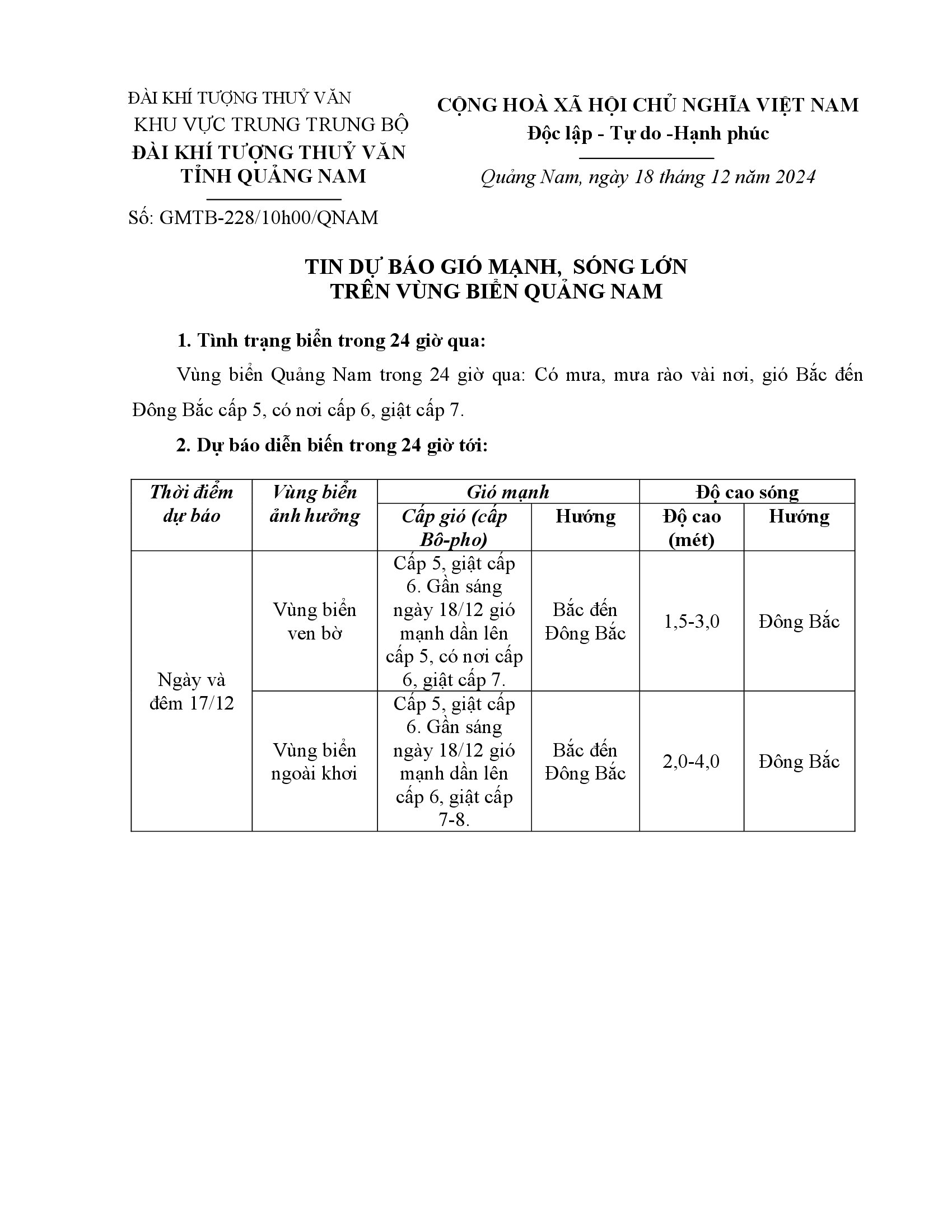 Người đăng: Văn phòng thường trực Ban Chỉ huy Phòng chống thiên tai và TKCN Quảng Nam Ngày đăng: 10:25 | 17/12/2024 Lượt xem: 76