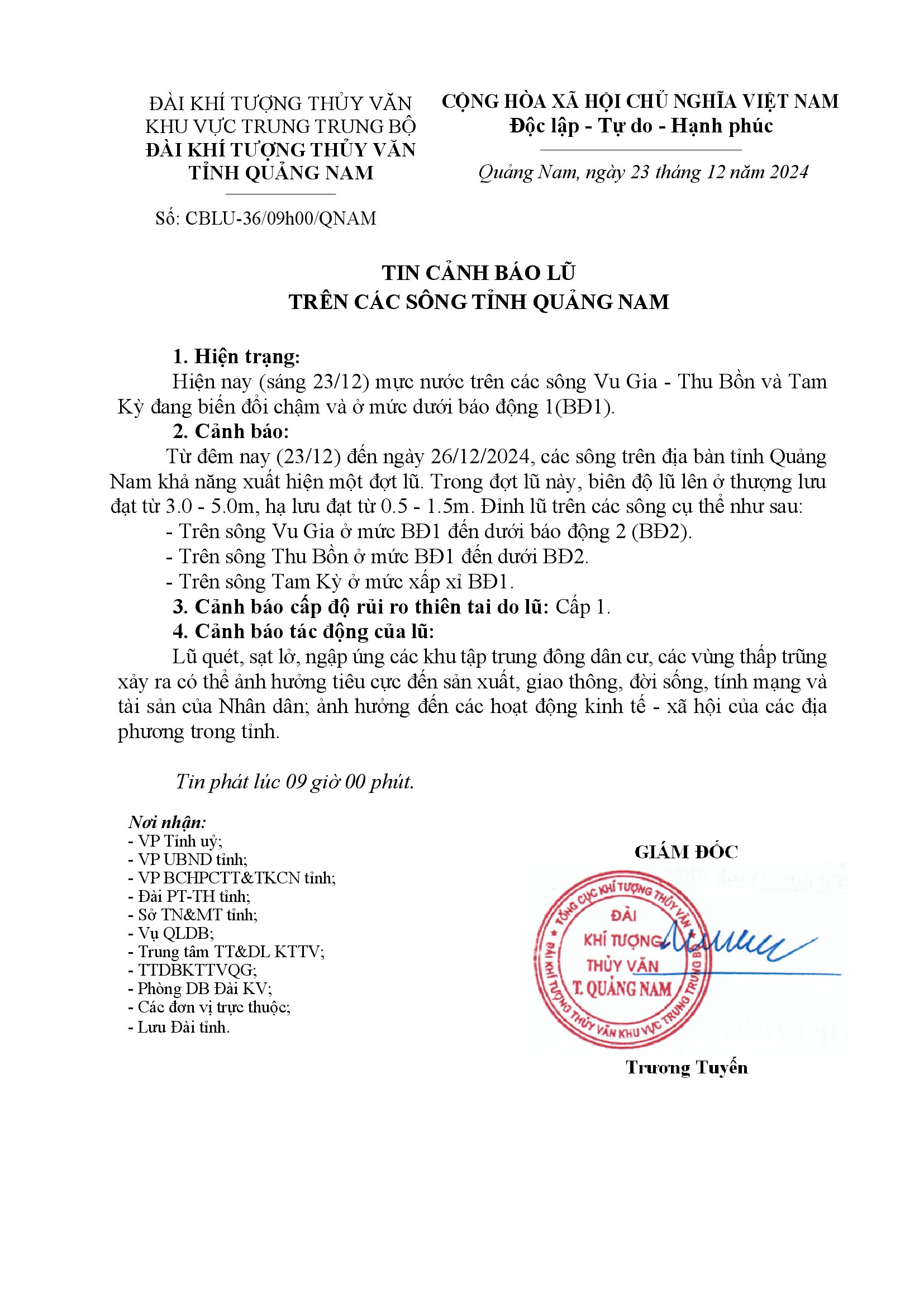 Người đăng: Văn phòng thường trực Ban Chỉ huy Phòng chống thiên tai và TKCN Quảng Nam Ngày đăng: 9:18 | 23/12/2024 Lượt xem: 92