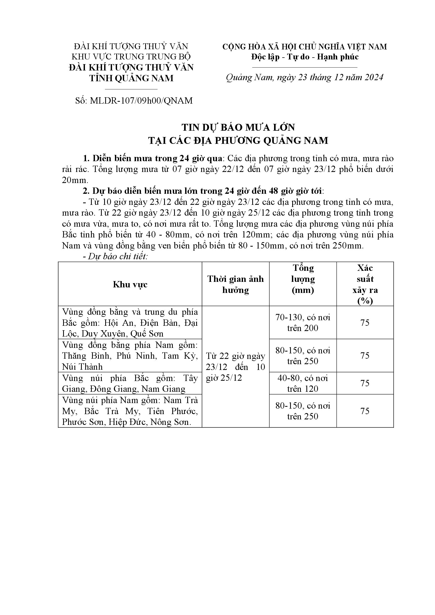 Người đăng: Văn phòng thường trực Ban Chỉ huy Phòng chống thiên tai và TKCN Quảng Nam Ngày đăng: 9:24 | 23/12/2024 Lượt xem: 86