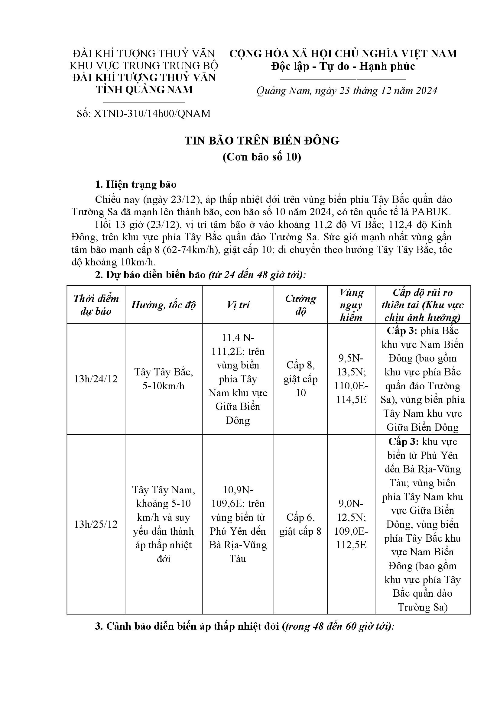 Người đăng: Văn phòng thường trực Ban Chỉ huy Phòng chống thiên tai và TKCN Quảng Nam Ngày đăng: 15:37 | 23/12/2024 Lượt xem: 73