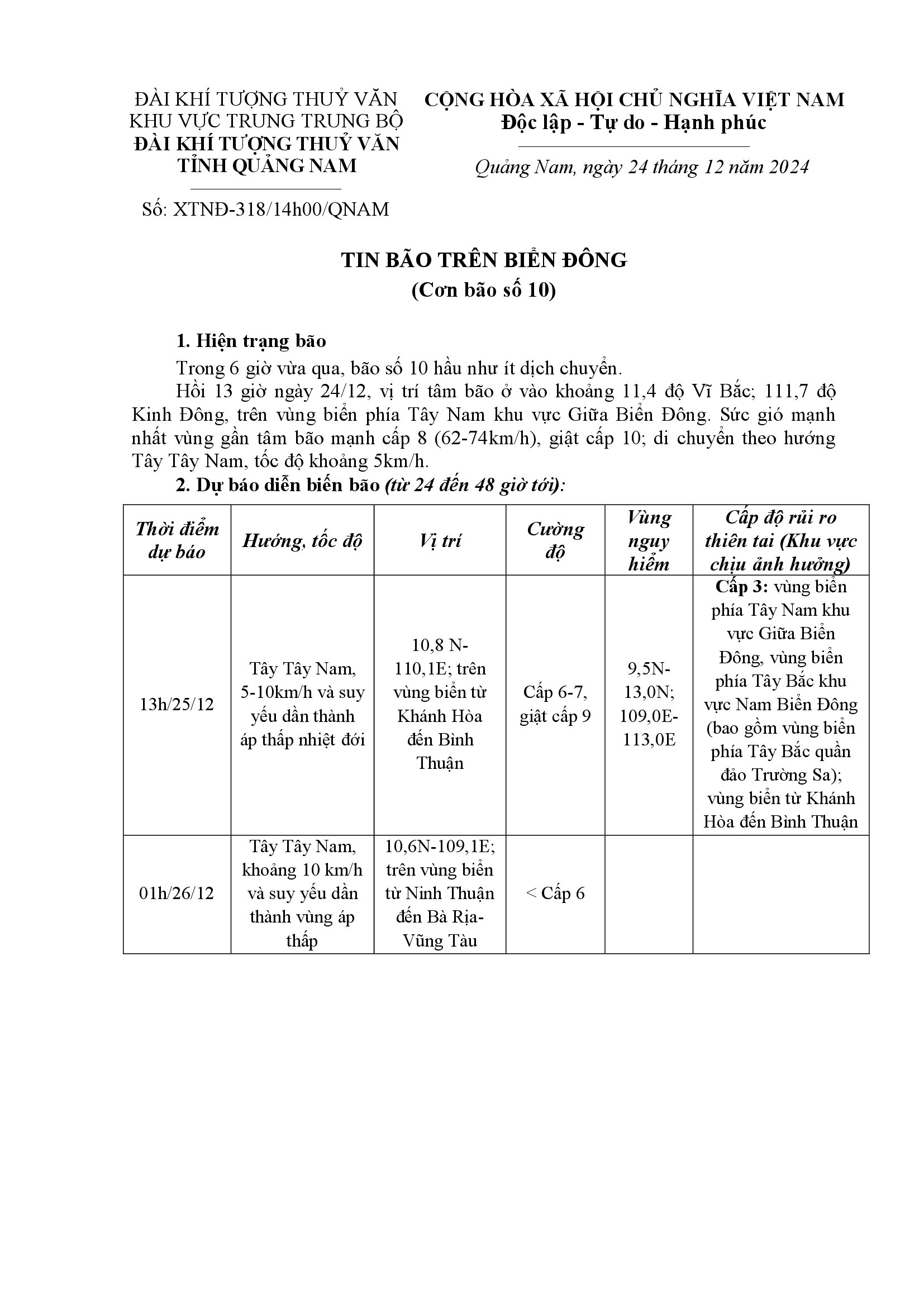 Người đăng: Văn phòng thường trực Ban Chỉ huy Phòng chống thiên tai và TKCN Quảng Nam Ngày đăng: 15:43 | 24/12/2024 Lượt xem: 70