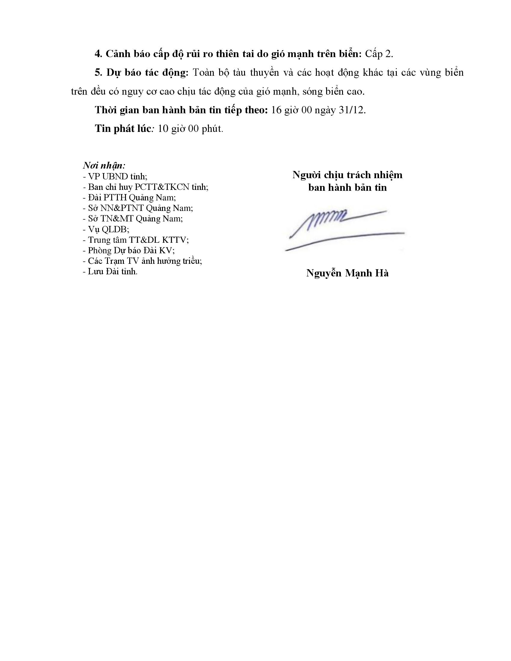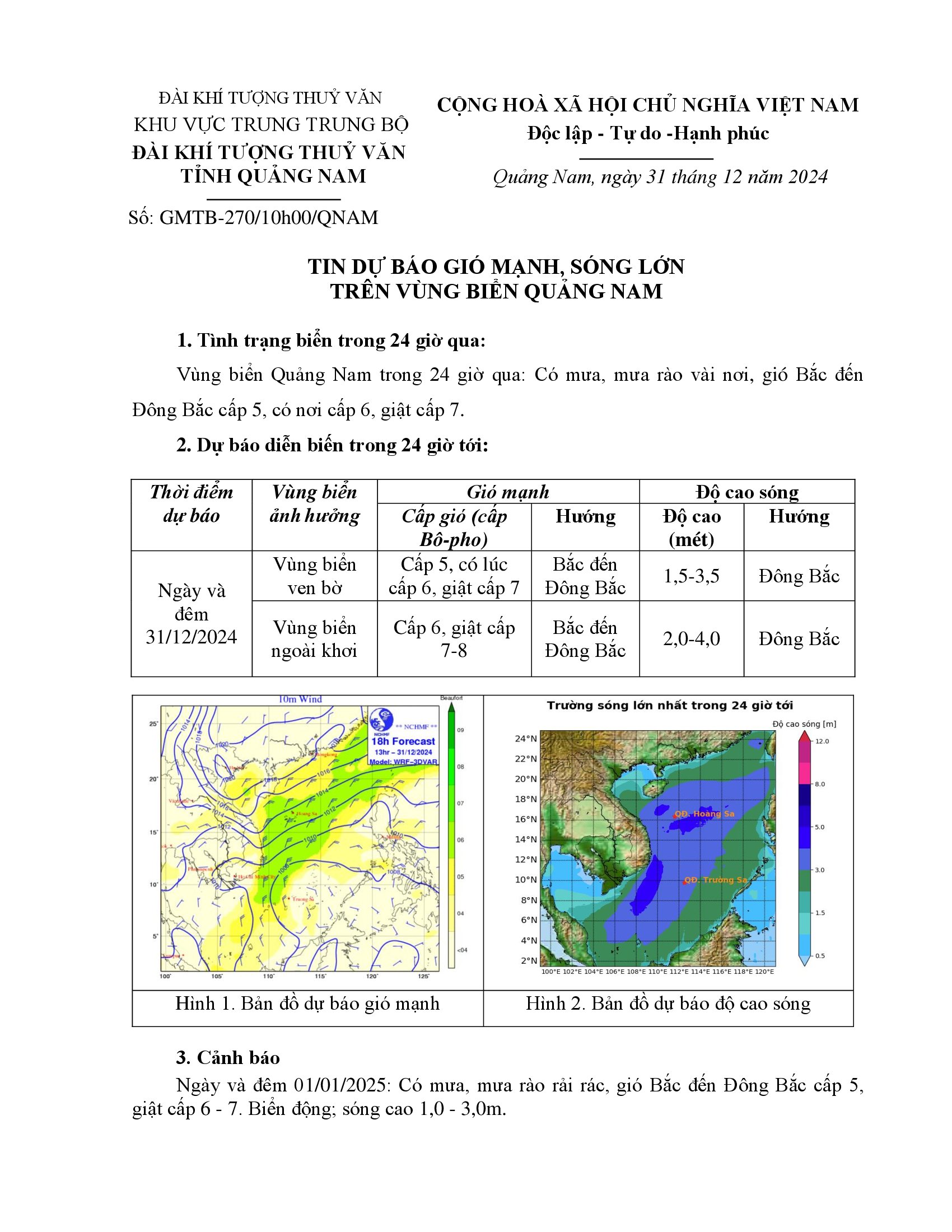Người đăng: Văn phòng thường trực Ban Chỉ huy Phòng chống thiên tai và TKCN Quảng Nam Ngày đăng: 10:30 | 31/12/2024 Lượt xem: 83