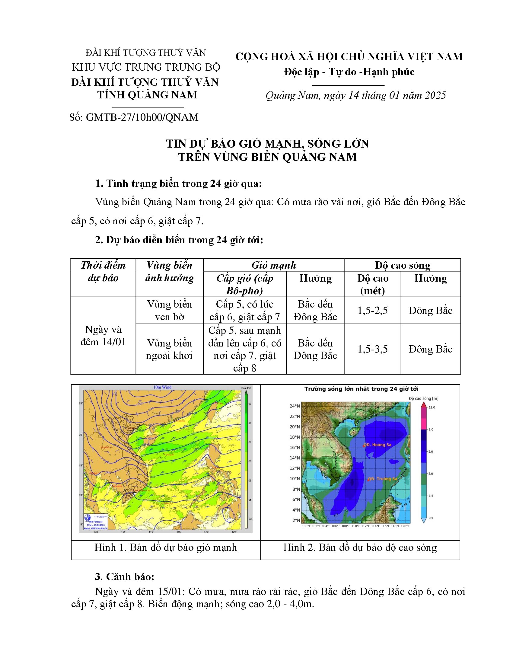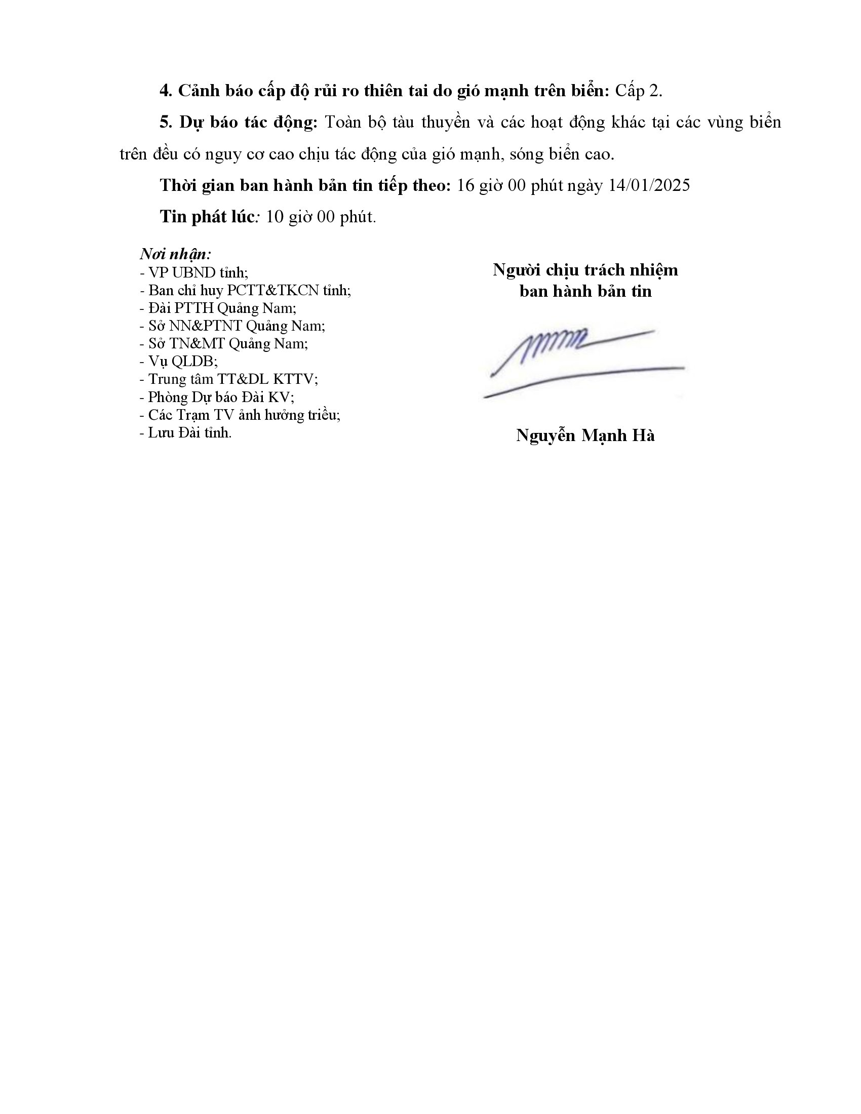 Người đăng: Văn phòng thường trực Ban Chỉ huy Phòng chống thiên tai và TKCN Quảng Nam Ngày đăng: 10:32 | 14/01/2025 Lượt xem: 72