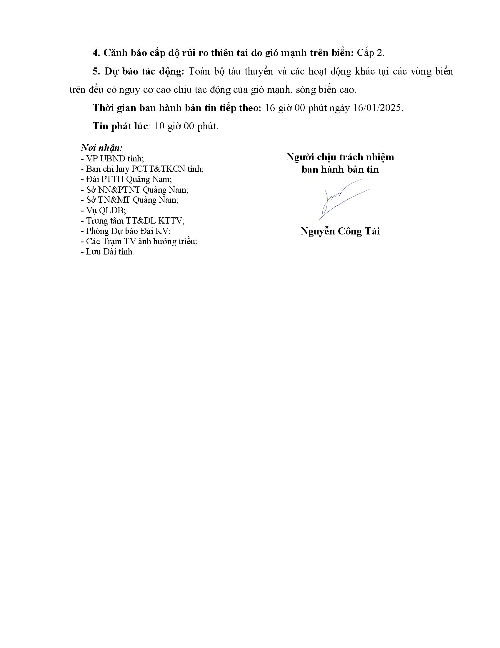 Người đăng: Văn phòng thường trực Ban Chỉ huy Phòng chống thiên tai và TKCN Quảng Nam Ngày đăng: 10:55 | 16/01/2025 Lượt xem: 76