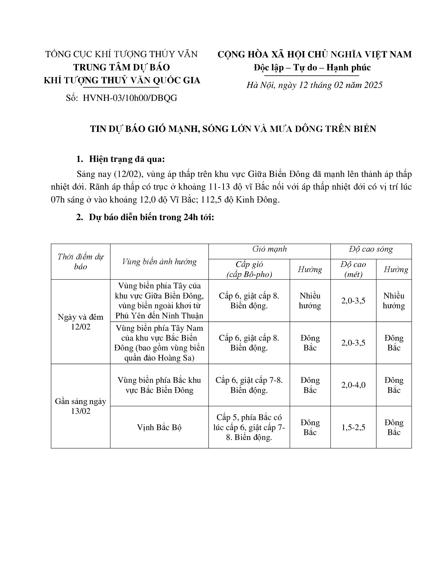 Nguồn tin: Trung tâm dự báo KTTV Quốc gia