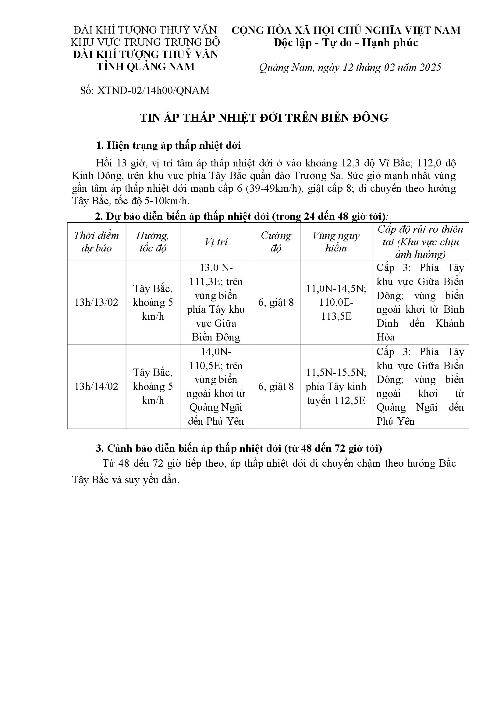 Người đăng: Văn phòng thường trực Ban Chỉ huy Phòng chống thiên tai và TKCN Quảng Nam Ngày đăng: 16:03 | 12/02/2025 Lượt xem: 57