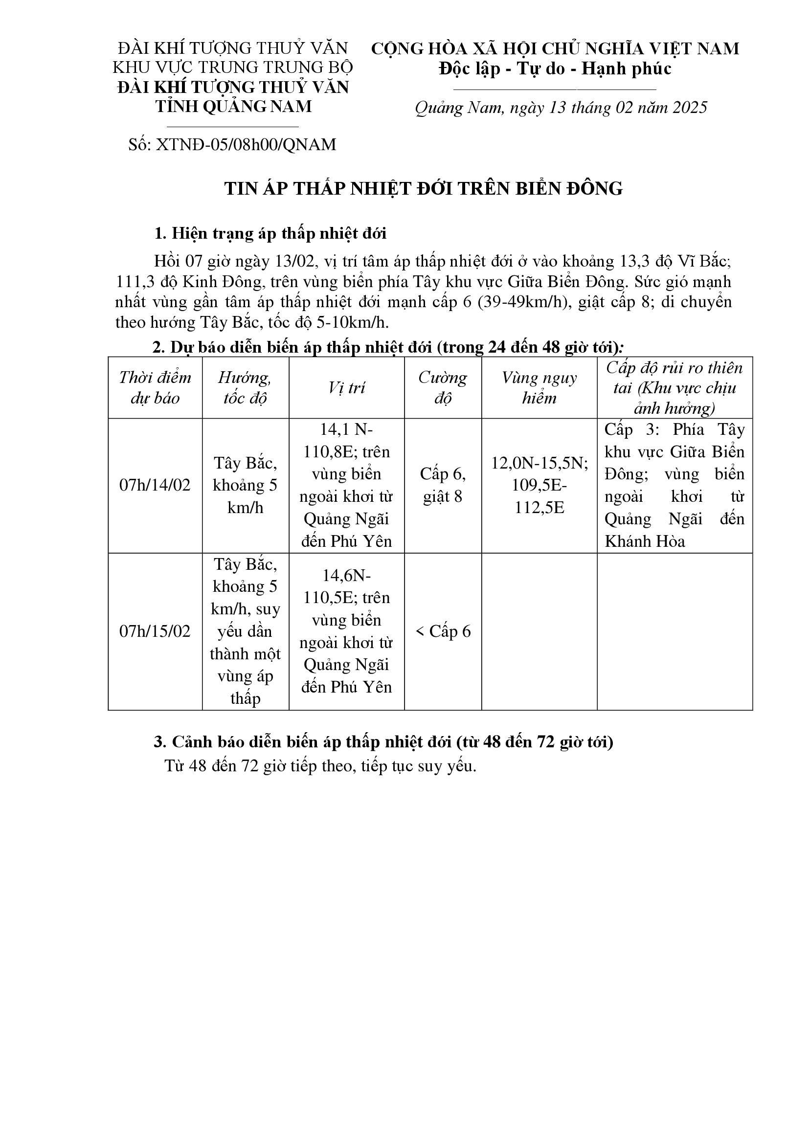 Người đăng: Văn phòng thường trực Ban Chỉ huy Phòng chống thiên tai và TKCN Quảng Nam Ngày đăng: 11:04 | 13/02/2025 Lượt xem: 65