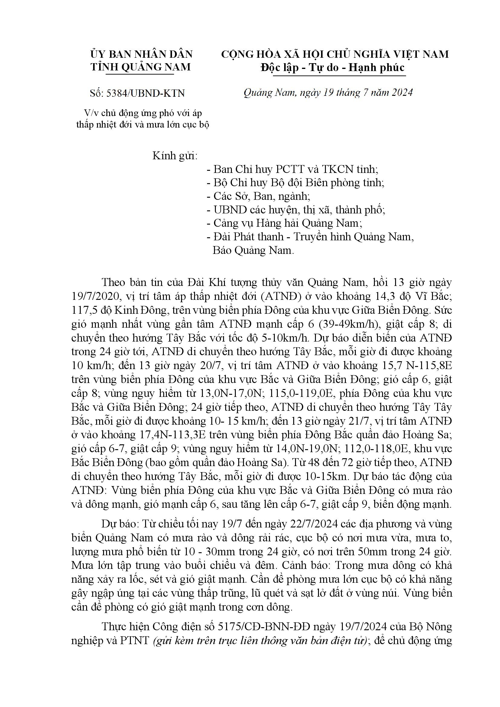 Người đăng: Văn phòng thường trực Ban Chỉ huy Phòng chống thiên tai và TKCN Quảng Nam Ngày đăng: 8:46 | 20/07/2024 Lượt xem: 119