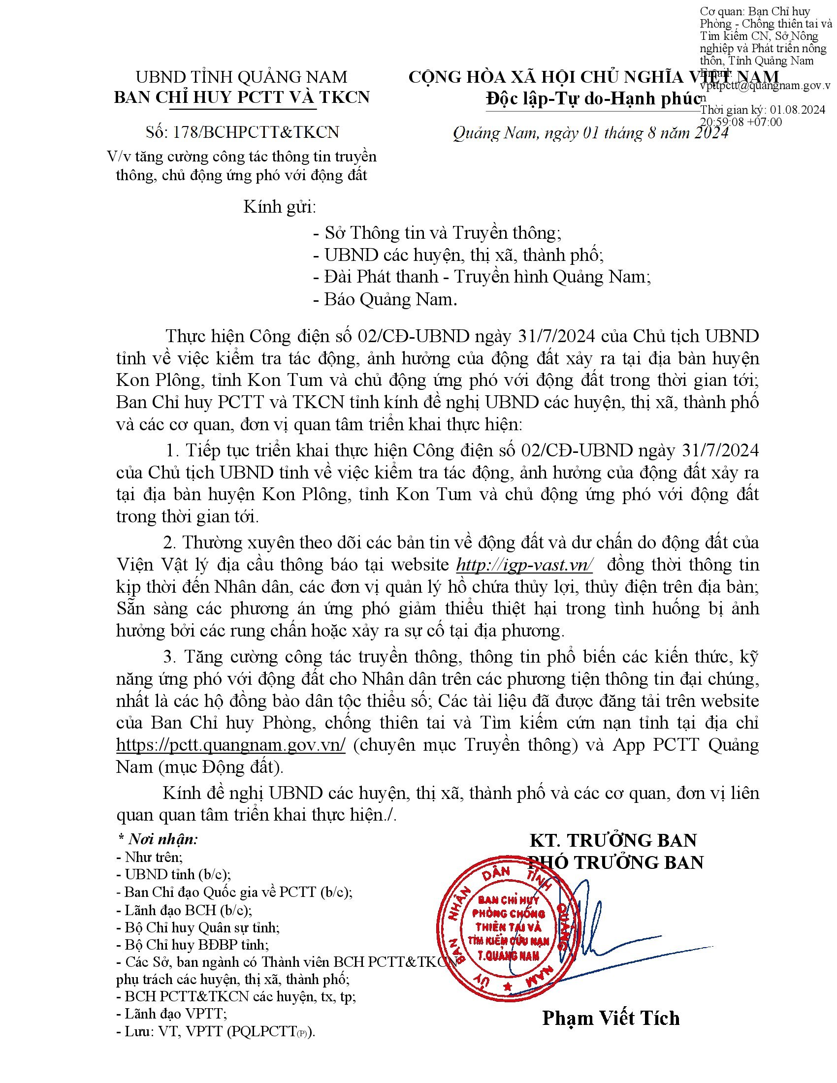 Người đăng: Văn phòng thường trực Ban Chỉ huy Phòng chống thiên tai và TKCN Quảng Nam Ngày đăng: 8:02 | 02/08/2024 Lượt xem: 133