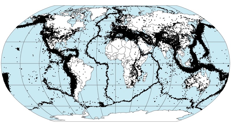 Tâm chấn động đất từ năm 1963 đến 1998 (ghi nhận 358.214 trận động đất)
